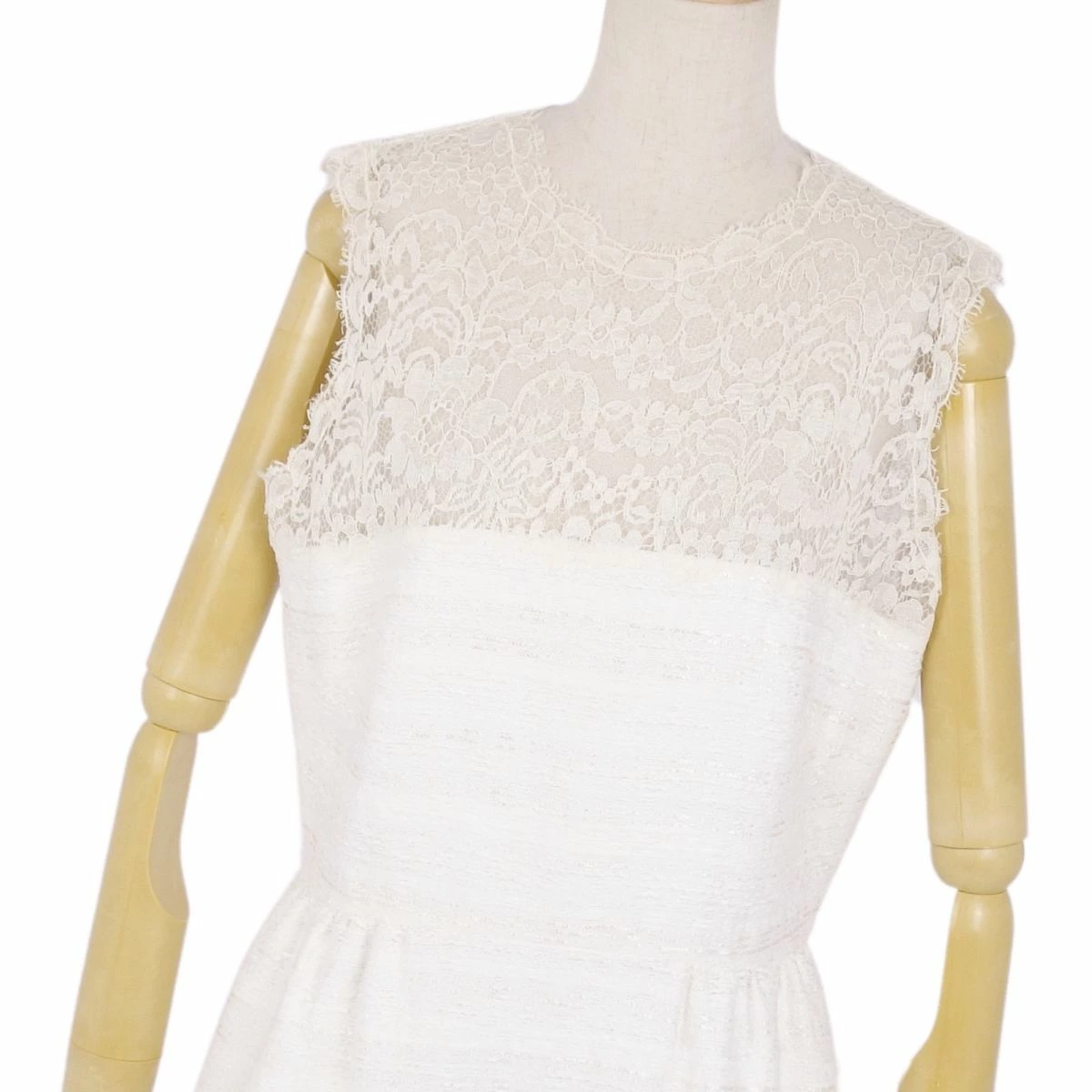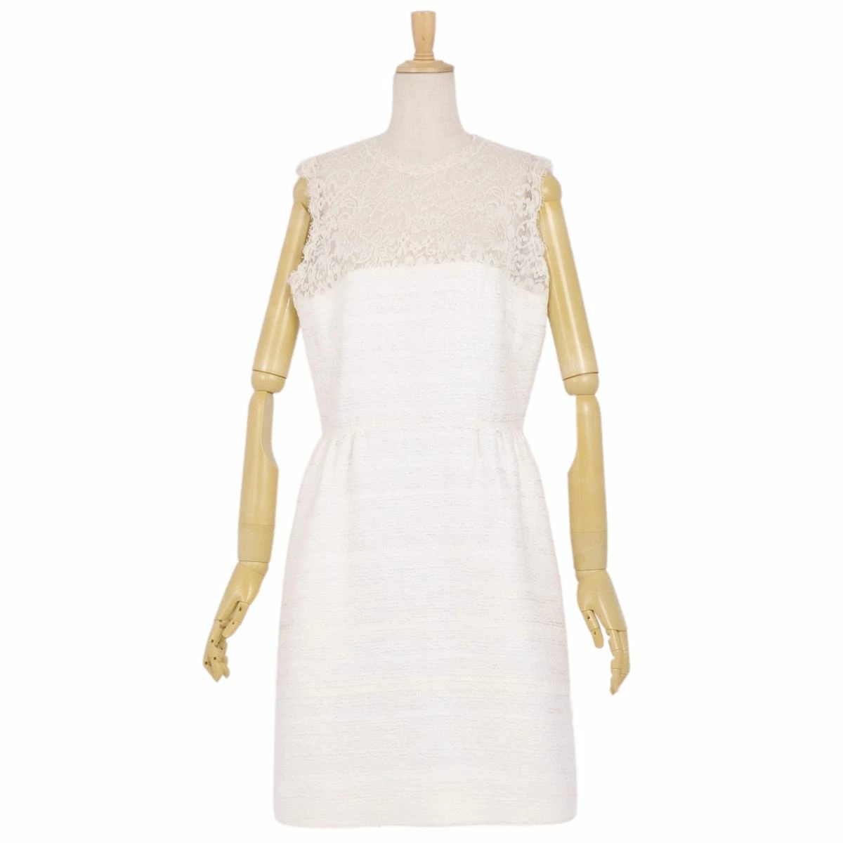 [Good Condition] Valentino VALENTINO Dress Sleeveless Lace Mixed Tweed Top Women's 42 (L equivalent) White [Used]