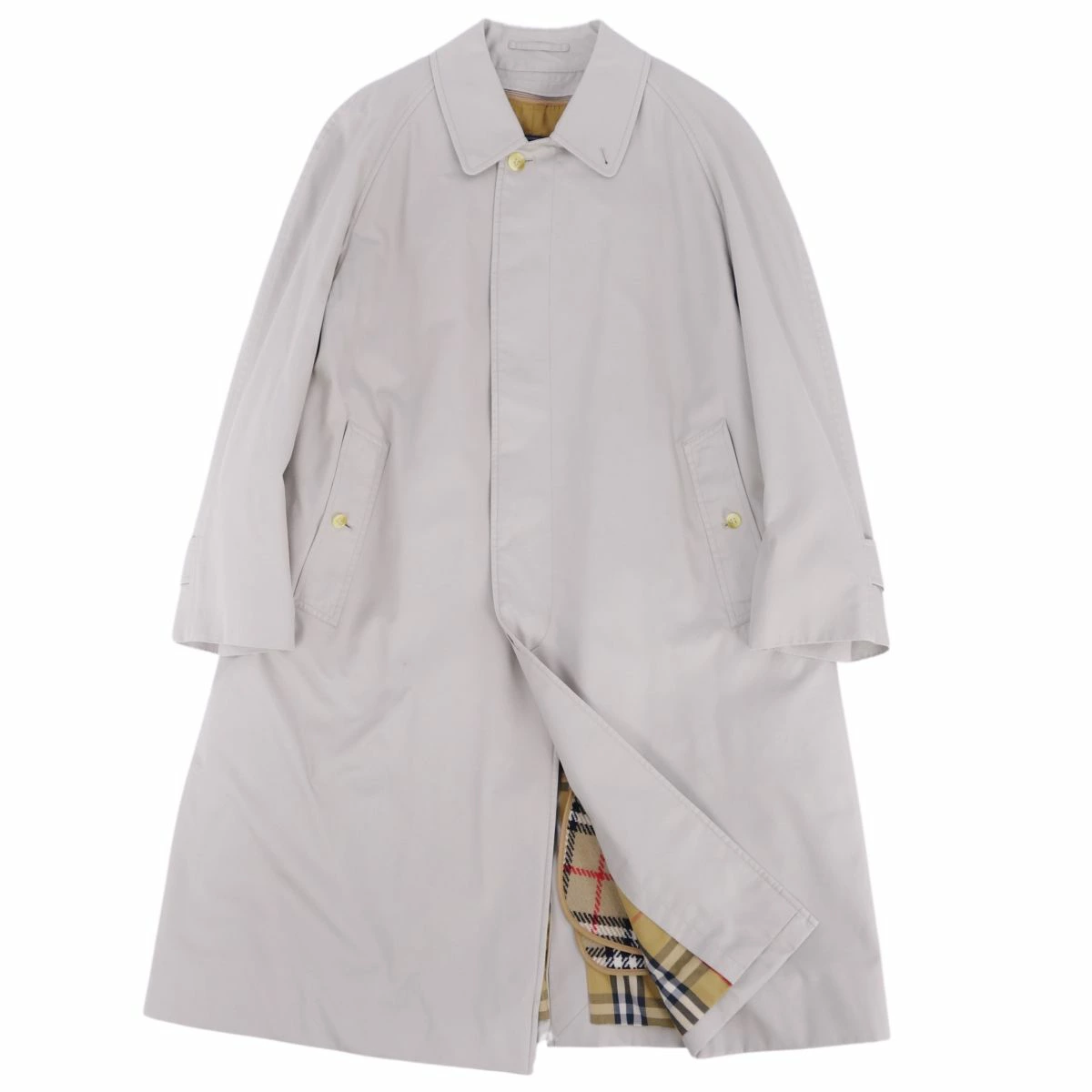 ■商品名Vintage バーバリー Burberrys コート ステンカラーコート バルマカーンコート ライナー付き アウター メンズ サンドベージュ サイズ92-170(M相当)■状態説明・希少かつ絶大な人気を誇るVintage Burberrys、クラシカルで美しいシルエットが魅力的なステンカラーコート(バルマカーンコート)です♪・表地はクラシカルなコットンギャバジン、裏地はアイコニックなチェックデザイン、肩パットなしで美しいショルダーラインです◎・国内正規取扱品です。・USEDですが気になるような傷や汚れなどはなく全体的にキレイな状態です!・裏地にネーム刺繍が御座います。【季節感:秋冬春】【付属品:ライナー】■素材表地:コットン70% ポリエステル30% 胴裏:ポリエステル コットン 袖裏:ポリエステル ライナー 表地:ウール100% 背部分:ポリエステル■カラーサンドベージュ■表記サイズ92-170(M相当)■実寸サイズ着丈:約101cm身幅:約57cmゆき丈:約81cm袖丈(脇下から):約40cm■状態ランクA 使用感の少ないキレイな状態■店舗管理番号cf01dt-rm05f08632mens_beige mens_m