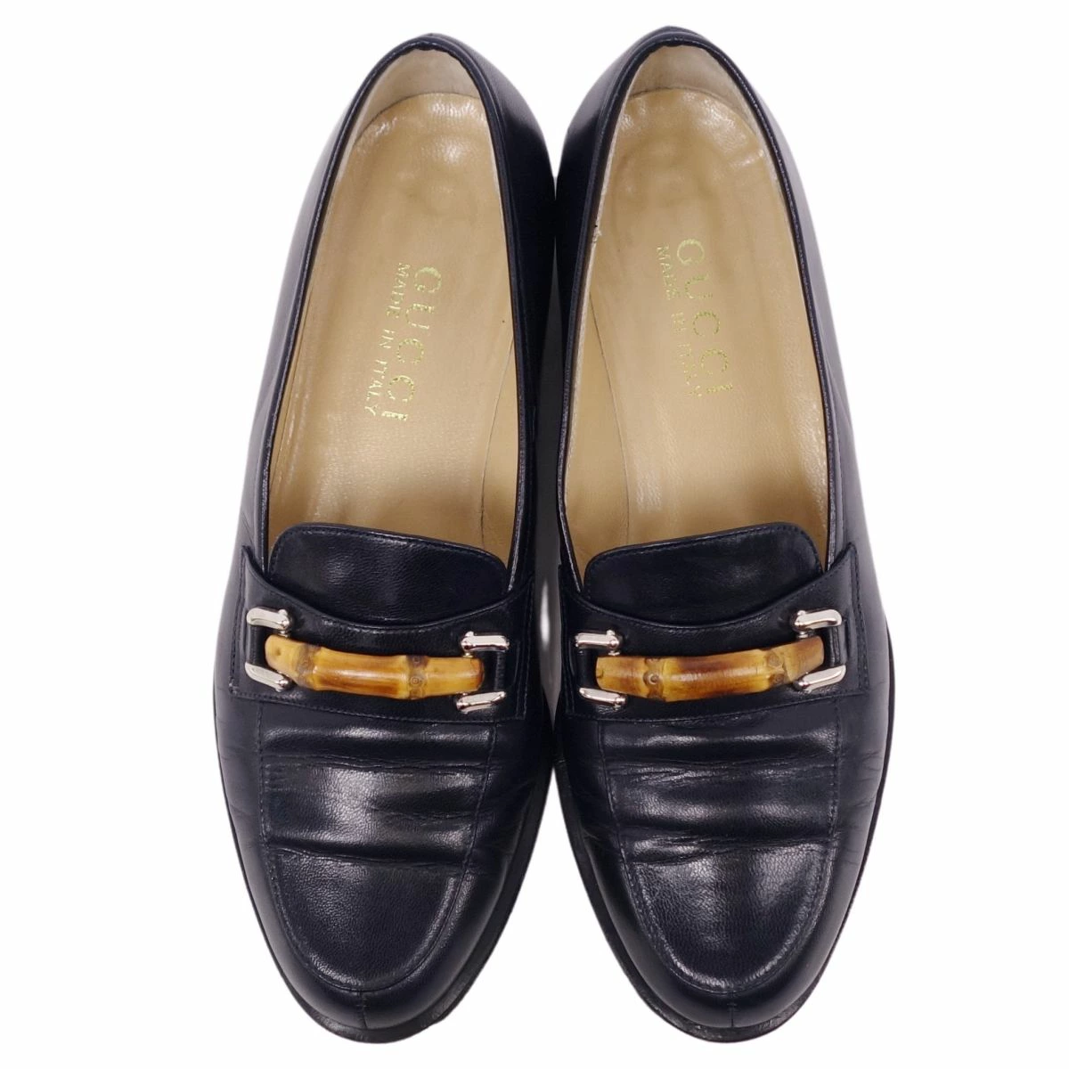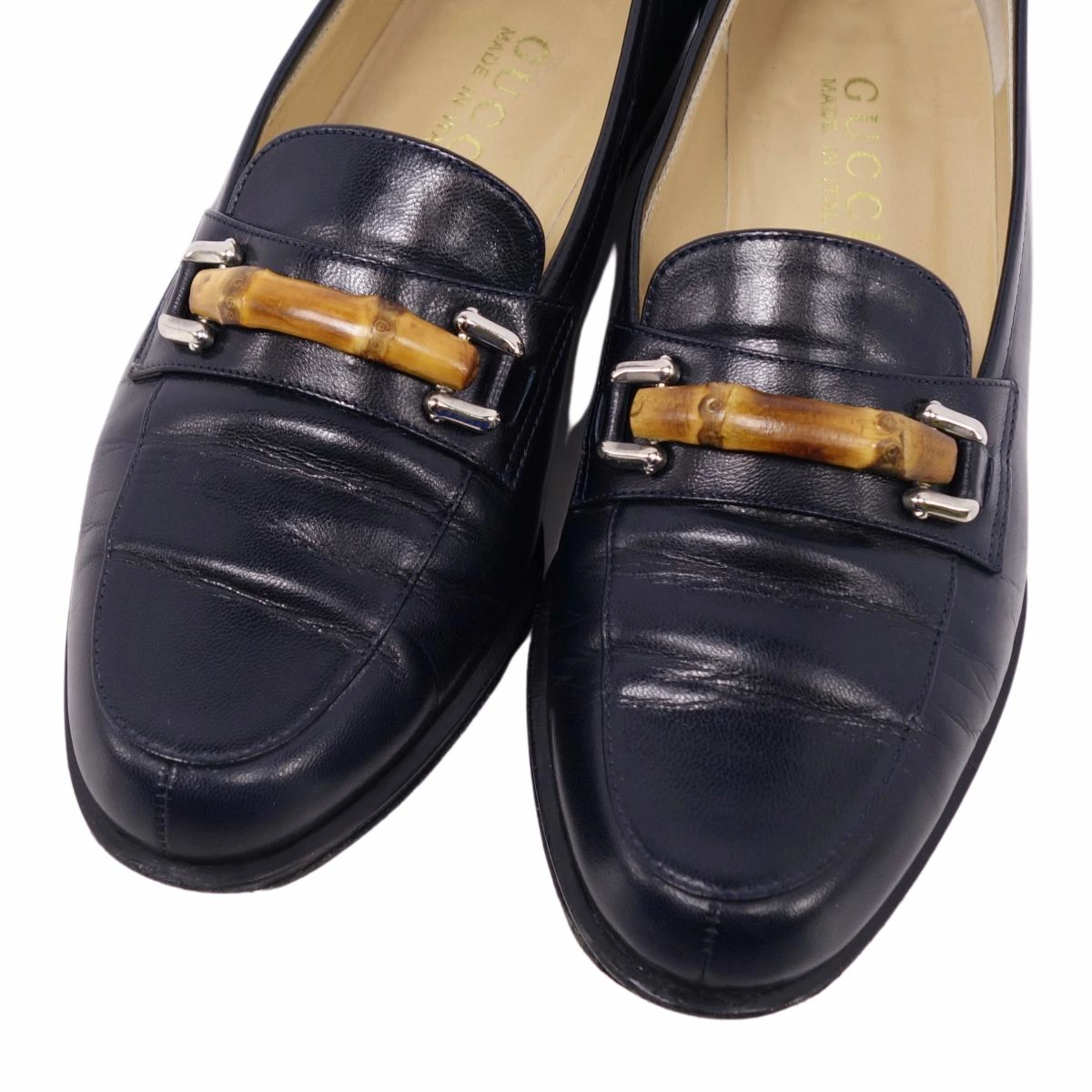 ■商品名Vintage グッチ GUCCI ローファー モカシン ホースビット バンブー レザー シューズ レディース ダークネイビー サイズ35.5C(22.5cm相当)■状態説明・希少なVintage GUCCI。上質なレザーを贅沢に使用したローファーです♪・アイコニックなバンブーホースビットが魅力的な一足です◎・イタリア製・着用時の履き皺が御座いますが、その他気になるような傷や汚れはなく全体的にきれいな状態です!【季節感:オールシーズン】【付属品:なし】■素材レザー■カラーダークネイビー■表記サイズ35.5C(22.5cm相当)■実寸サイズアウトソール:約24cm幅:約8.5cm■状態ランクAB 使用感があるが、傷や汚れの気にならない状態■店舗管理番号cf11mn-rm10f12161womens_navy