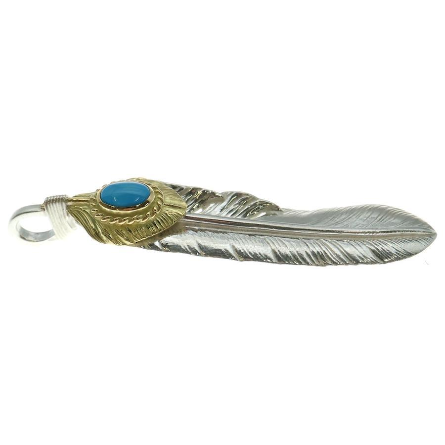 [モデル]【新品】【現行】上金金縄ターコイズ特大フェザー 左向き ペンダントトップ シルバー/ゴールド