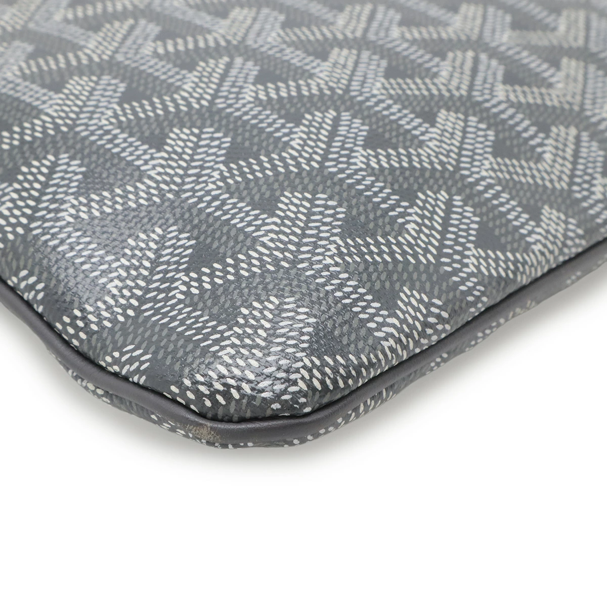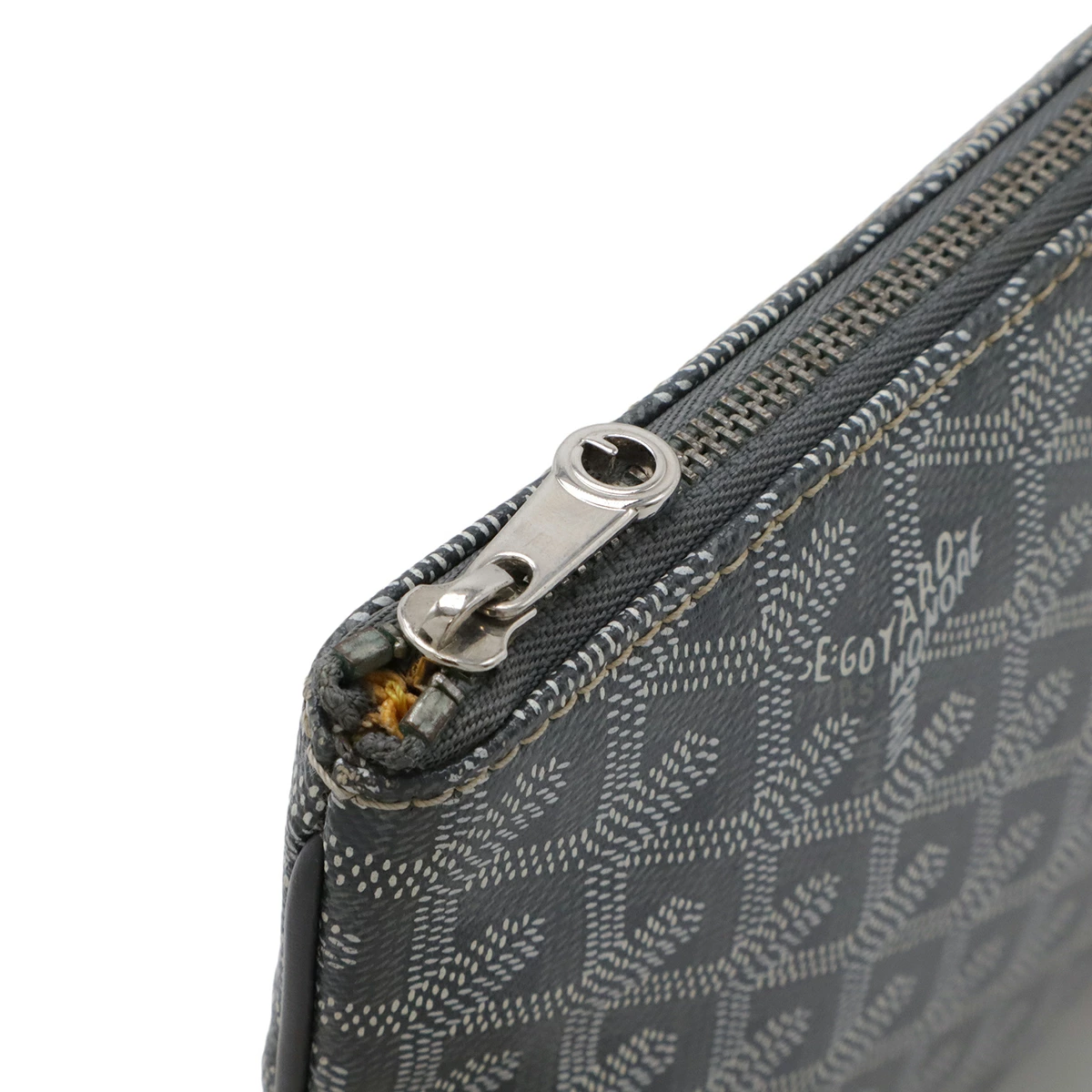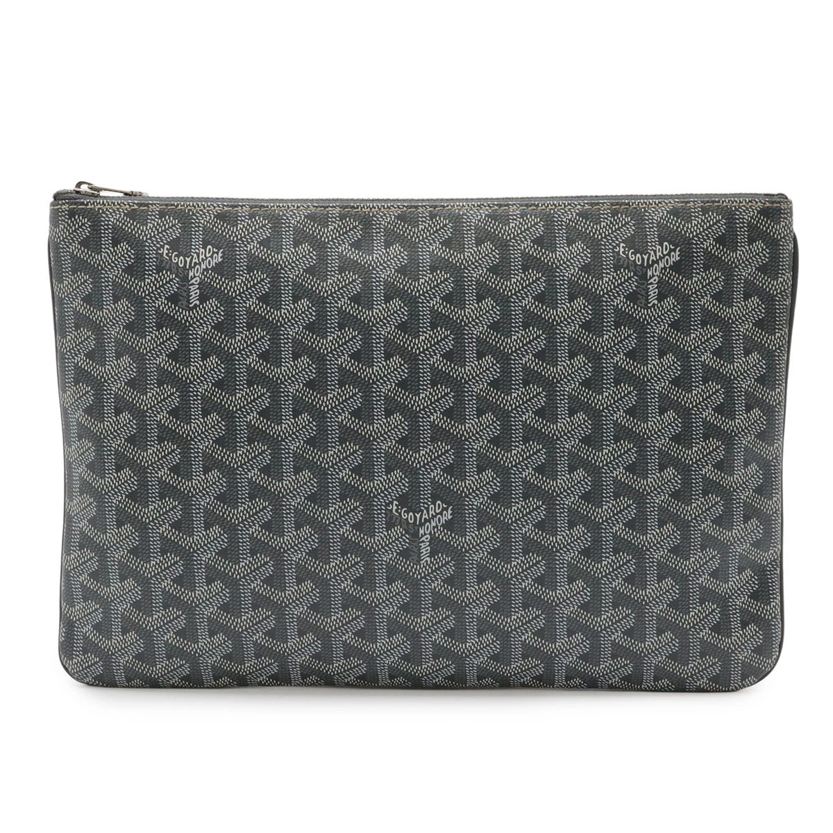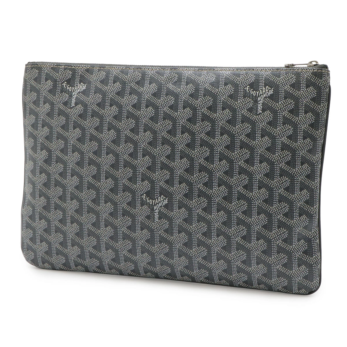 GOYARD Sena MM Clutch Bag, Second Bag, Coated Canvas, Leather, Gray/White, Silver Hardware [Used]