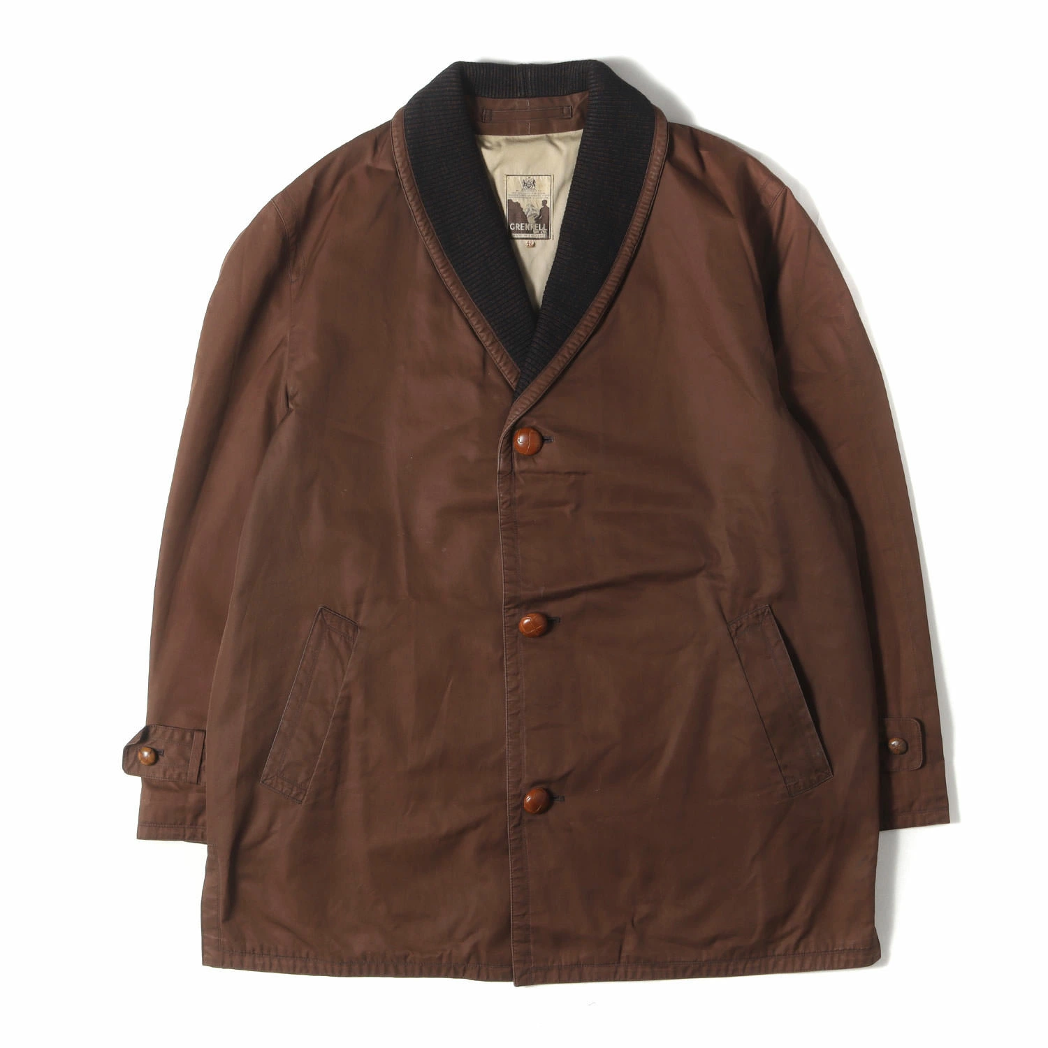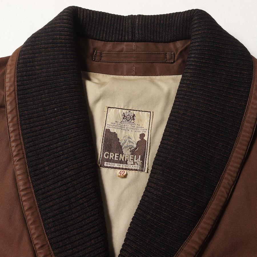 Grenfell Jacket, Brown, Size 42 (XL) | Rare, with tag | 60s Knitted Shawl Collar Cotton Jacket | Made in England | 60s Vintage Clothing | Men's Outerwear, Blouson Coat | Pre-owned | K4614