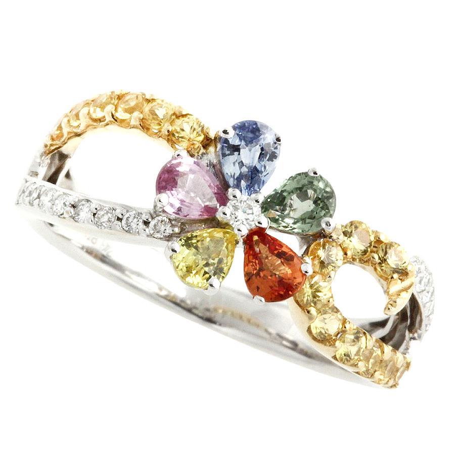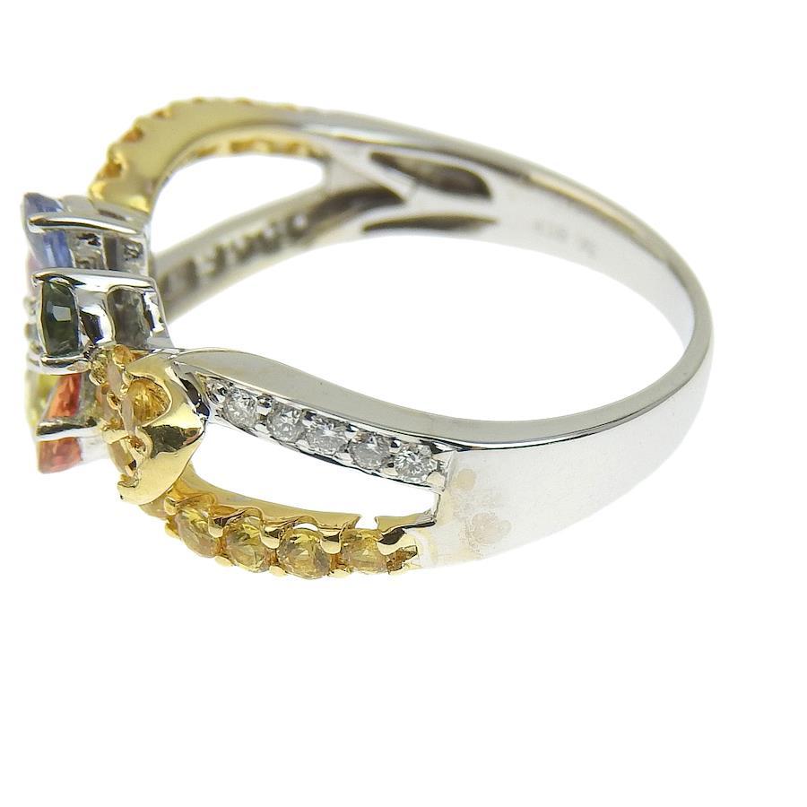 [Guaranteed authentic] Authentic, like new, natural corundum ring, K18, sapphire, size 16, colorful, gorgeous, gorgeous, beautiful, no brand, [used]