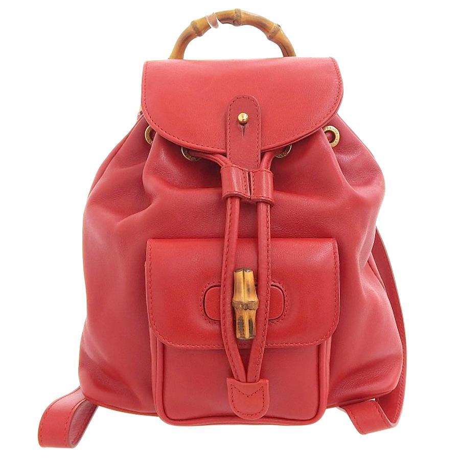 [Guaranteed authentic] Rare Gucci Bamboo Mini Backpack 003 2058 0030 Leather Red Vintage [Used]