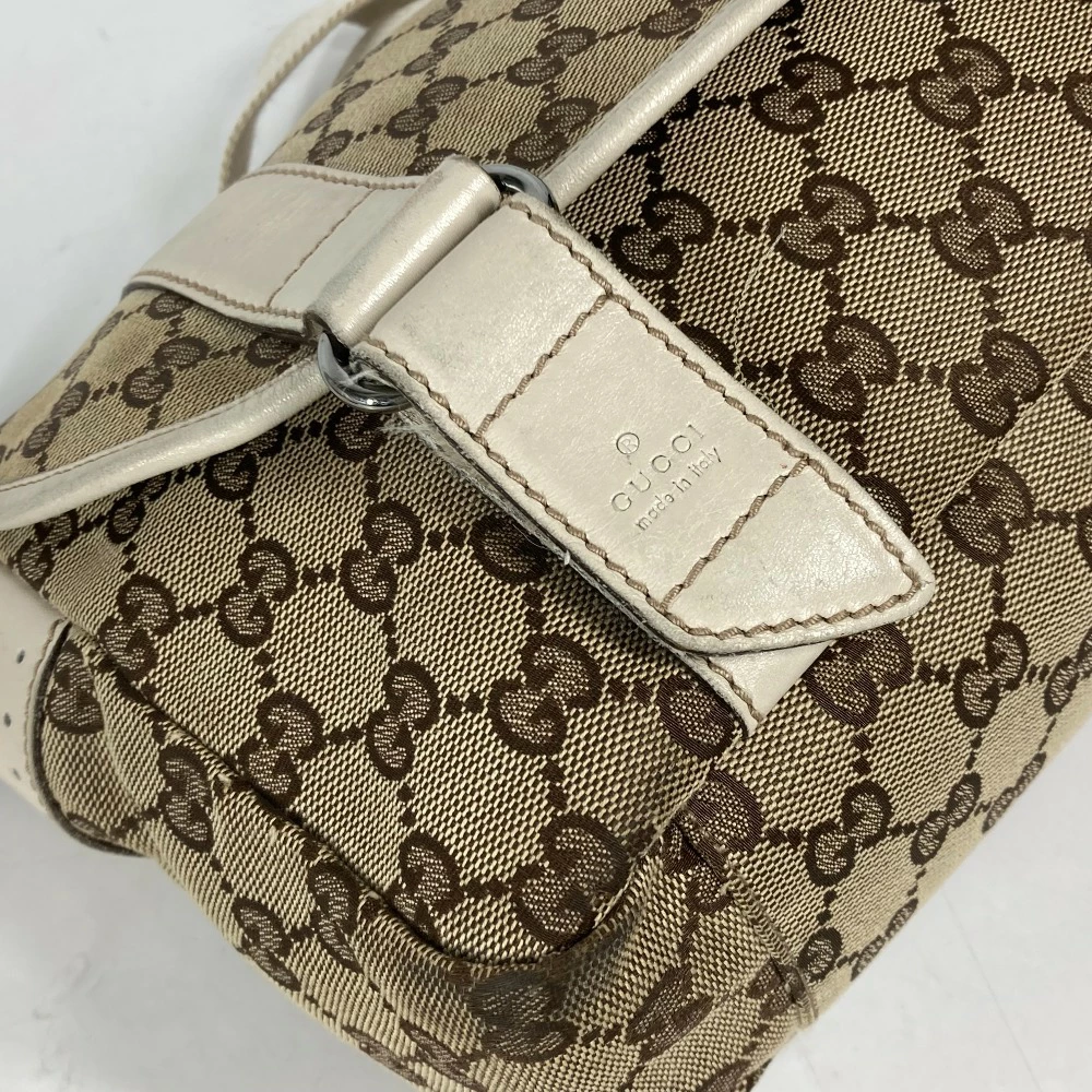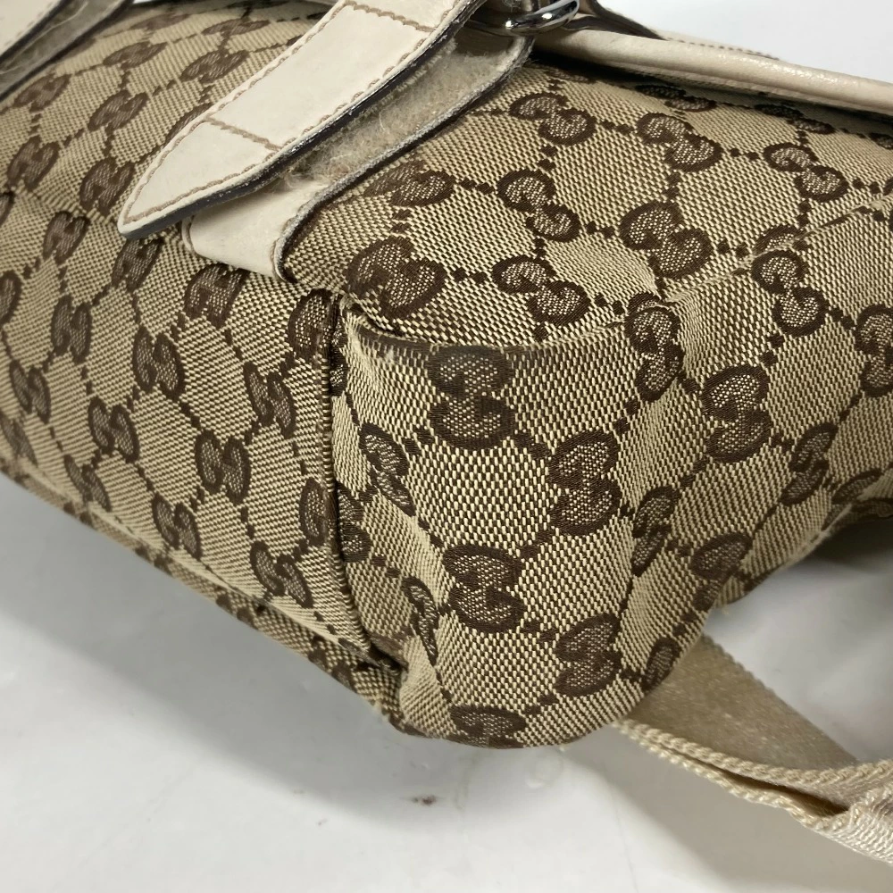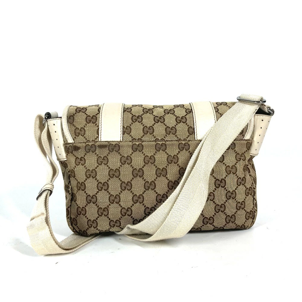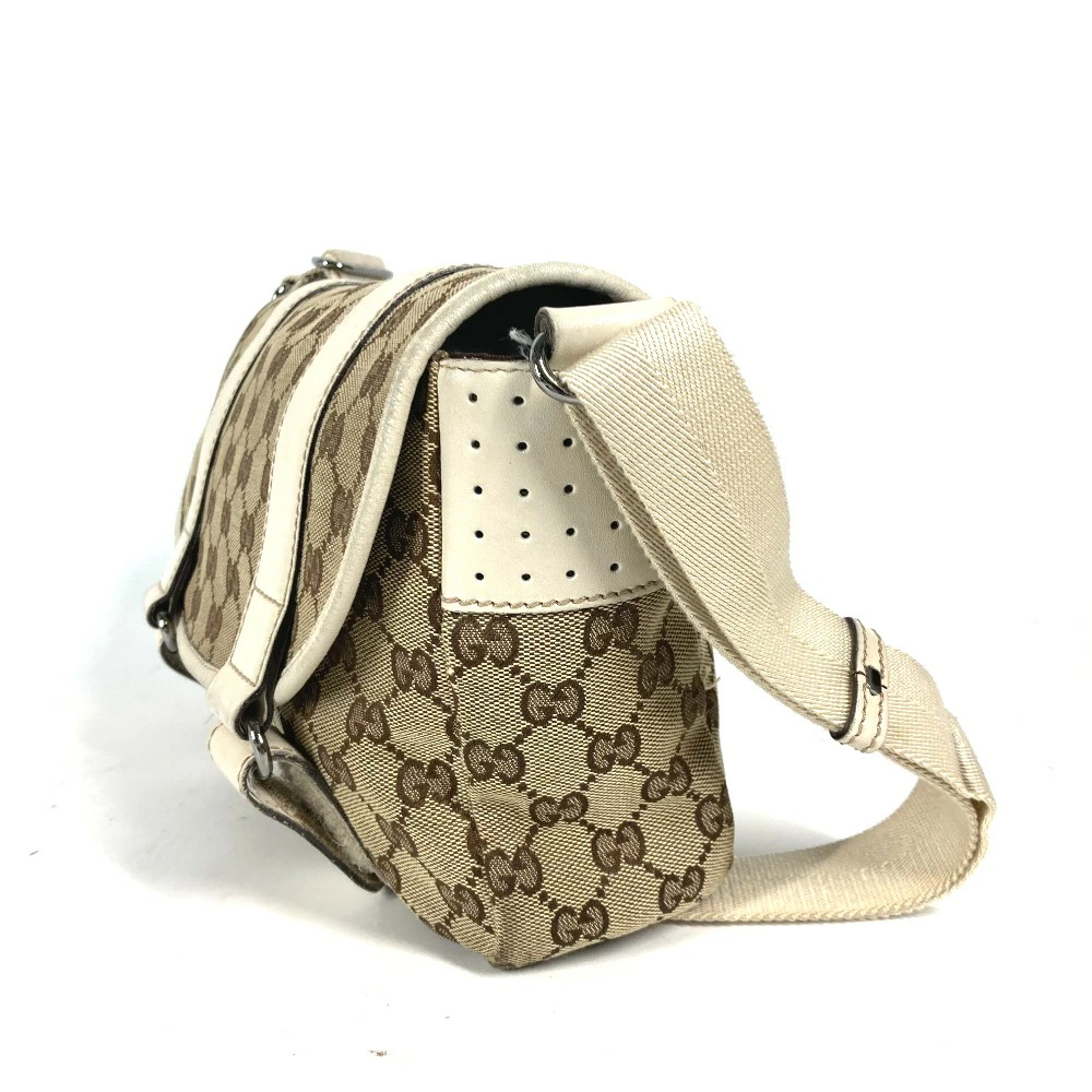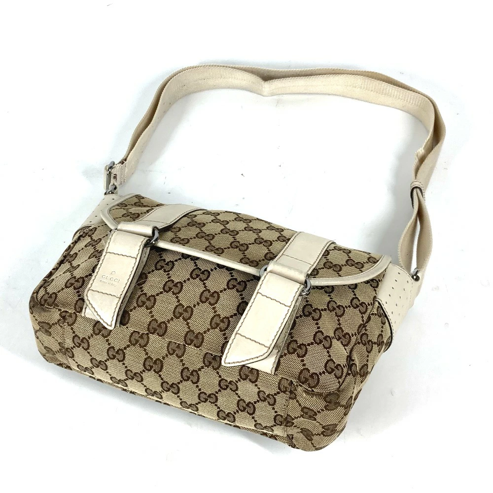 GUCCI 145858 GG Flap Shoulder Bag in Beige, GG Canvas/Leather, Unisex [Pre-owned]