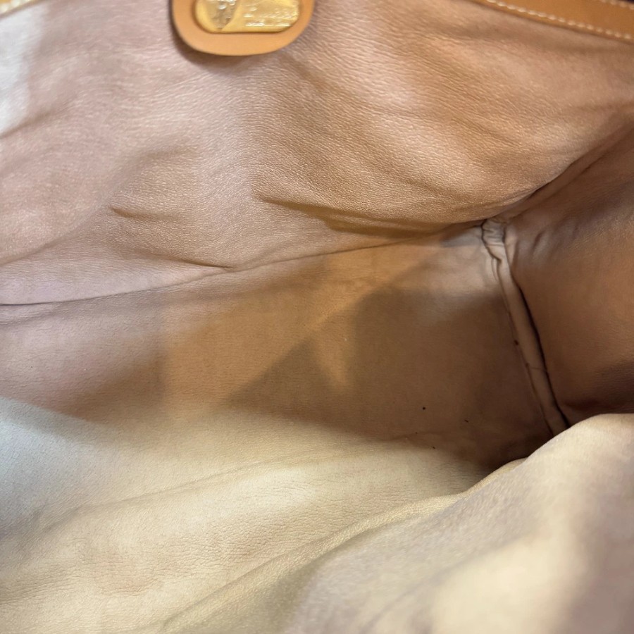 | 状態 | 【外・表面】擦れ、キズ、汚れ 【外・ハンドル-ストラップ】擦れ、キズ、汚れ、シミ、亀裂 【外・コーナー】擦れ、キズ、汚れ、黒ずみ 【外・形状】少し型崩れ 【内側】擦れ、キズ、汚れ、粉吹き 【ファスナー部分】擦れ 【におい】古い匂い 【金具部分】小キズ、擦れ、汚れ、くすみ 内側に粉吹き有り。ハンドストラップ付け根に劣化有り。 |