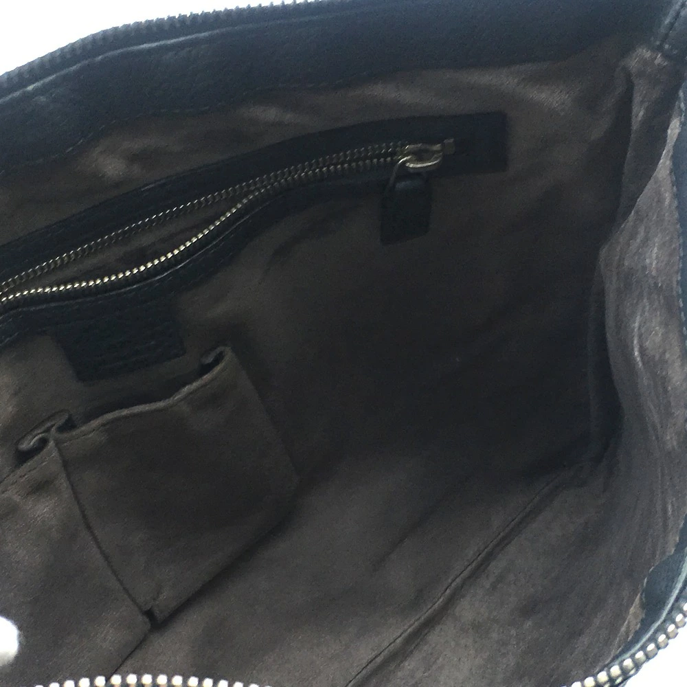 GUCCI 233329 All-Leather Business Bag with No Gusset, A4 Document Storage, Crossbody/Shoulder Bag, Men's, Gray/Dark Gray (Pre-owned)
