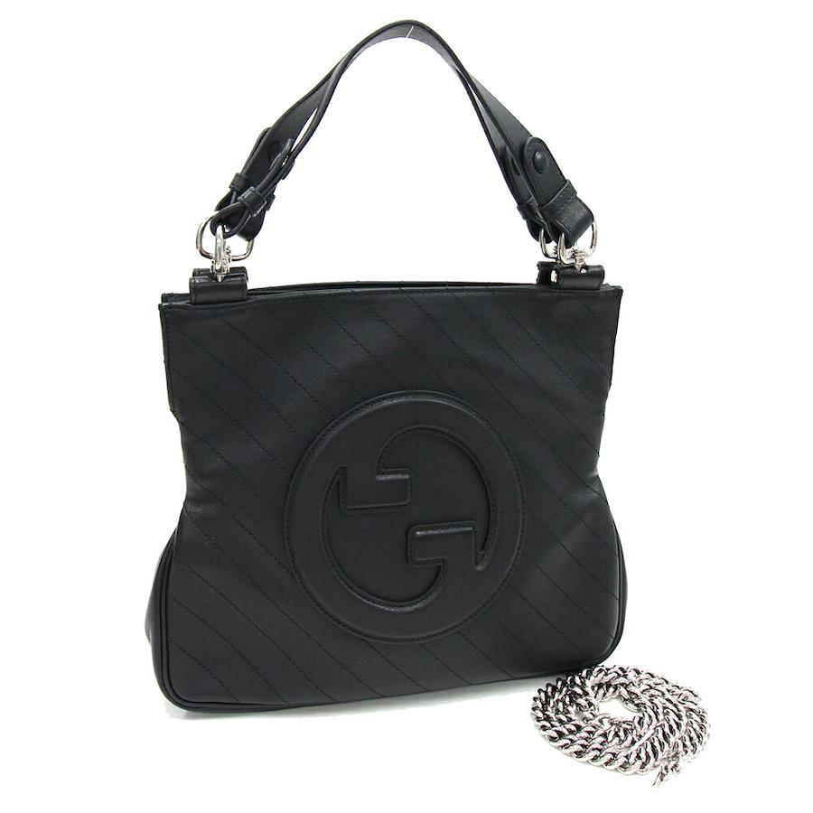 グッチ2WAYハンドバッグブロンディスモール751518ブラックレザー中古ショルダーバッグ肩掛け斜め掛けチェーンショルダーレディースGUCCI