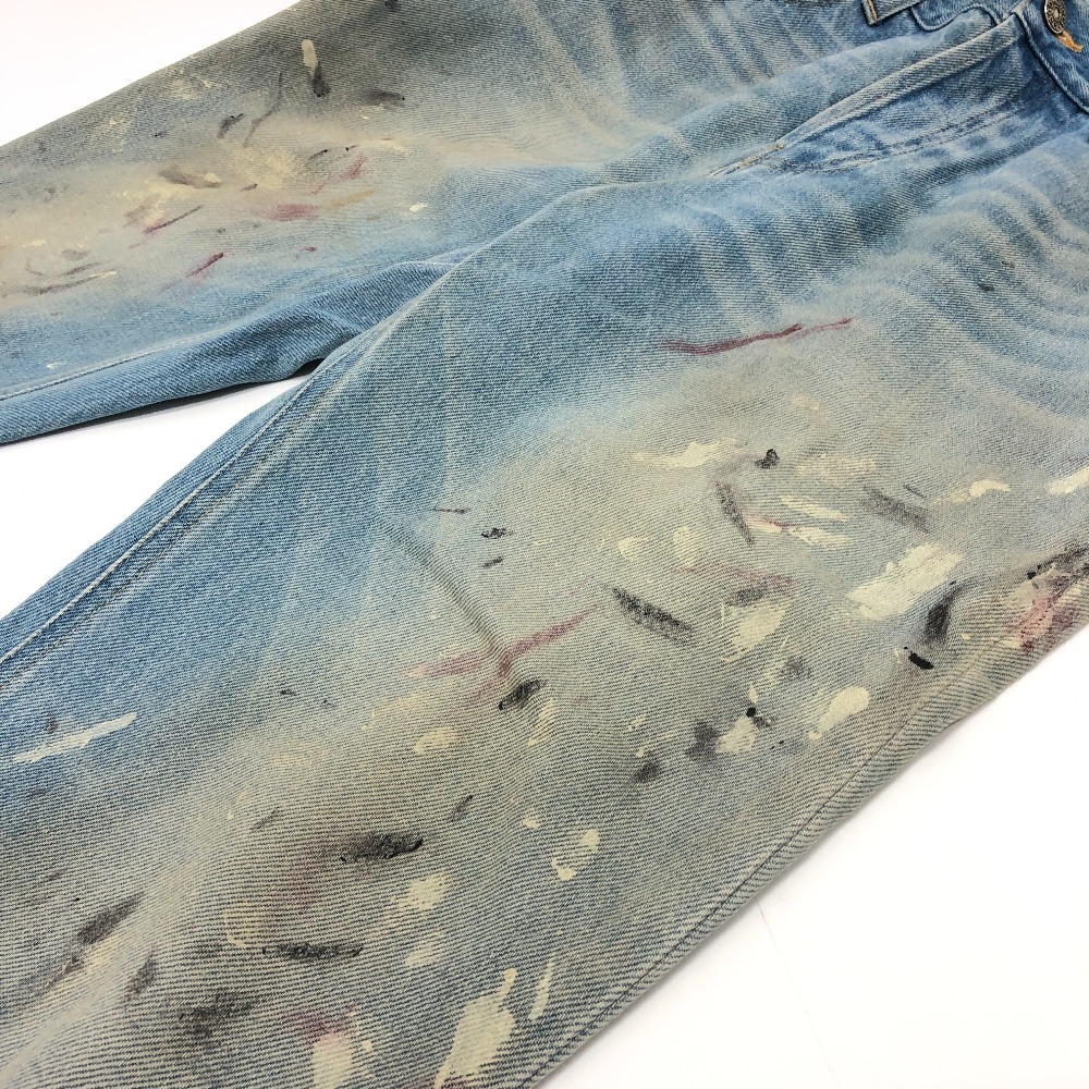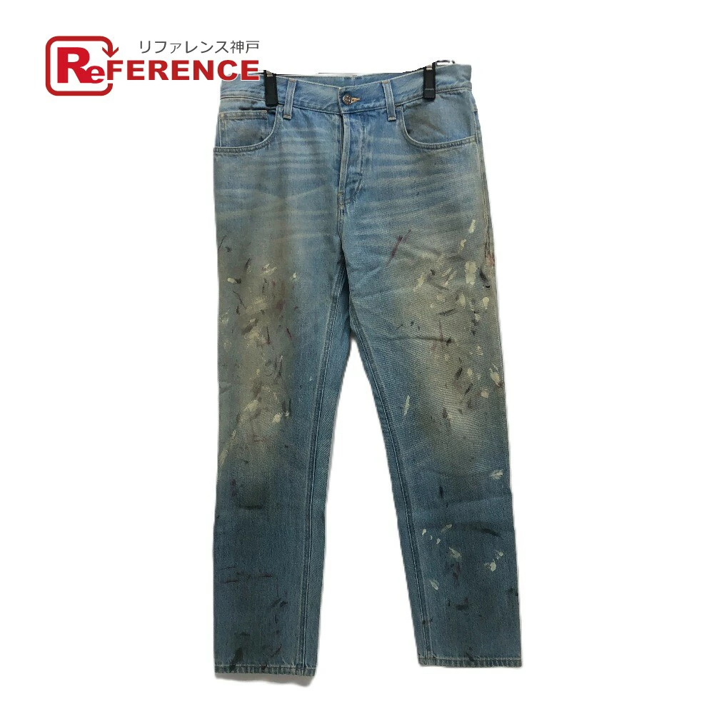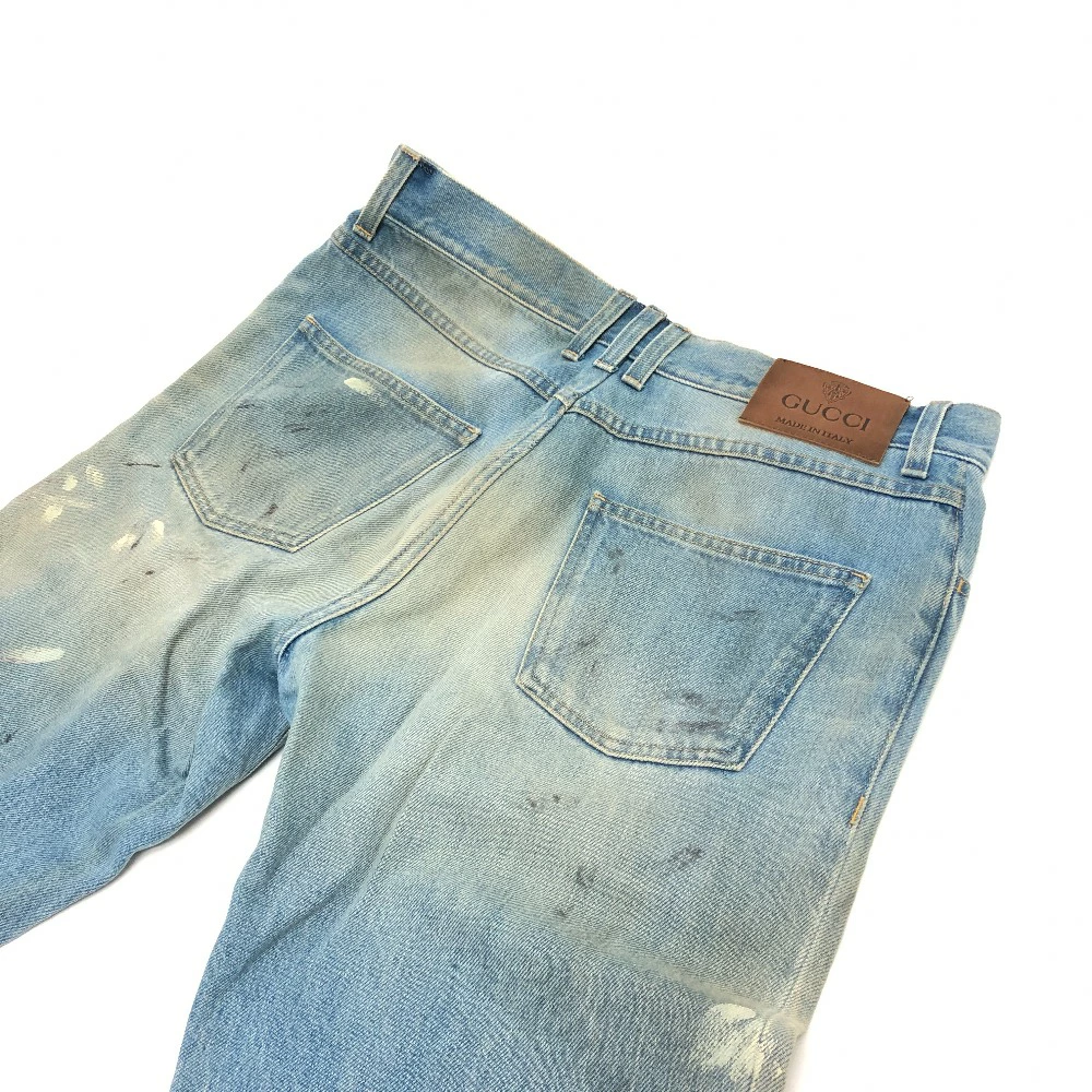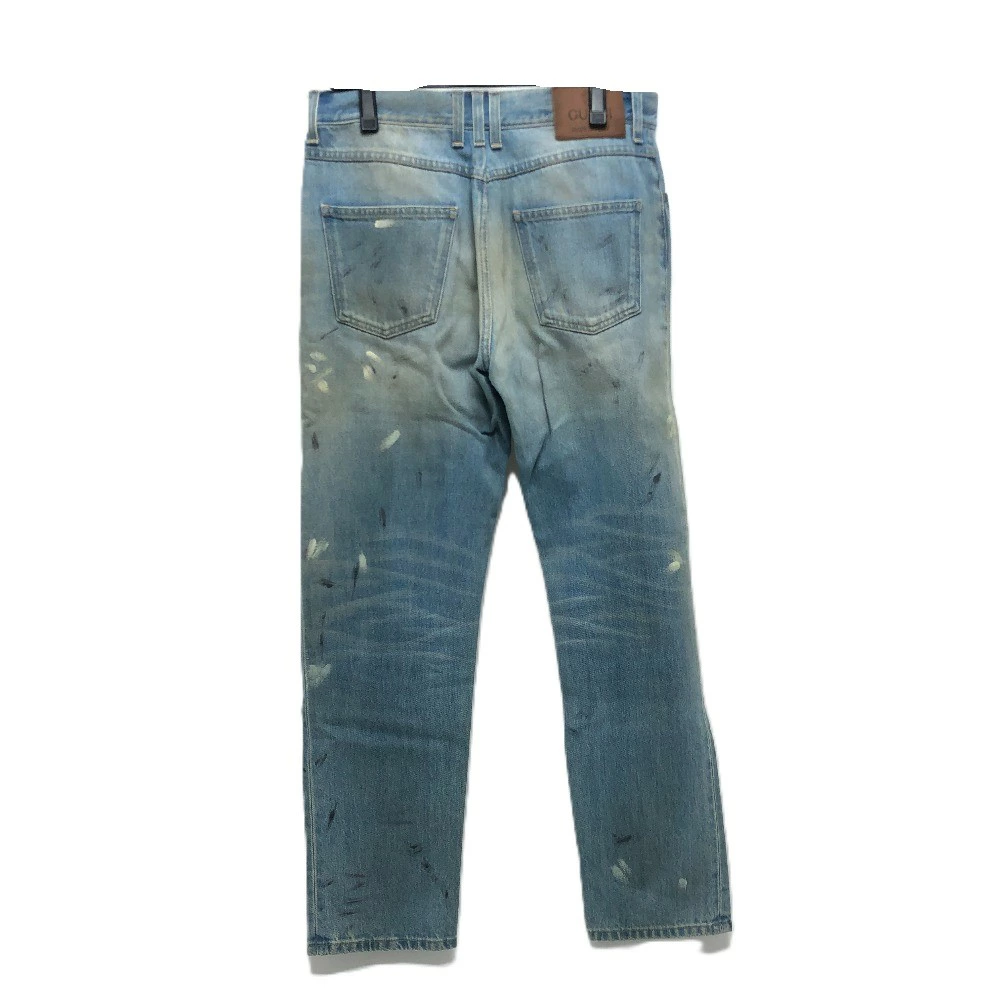 GUCCI 375819 Paint Crushed Denim Pants, Men's Cotton, Blue, Pre-owned