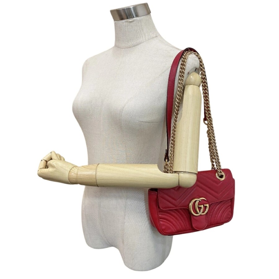 GUCCI 446744 Chain Crossbody One-Shoulder Bag GG Marmont Heart Shoulder Bag Handbag Crossbody Shoulder Bag Brand Red