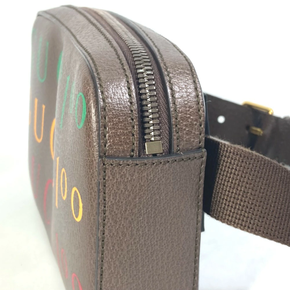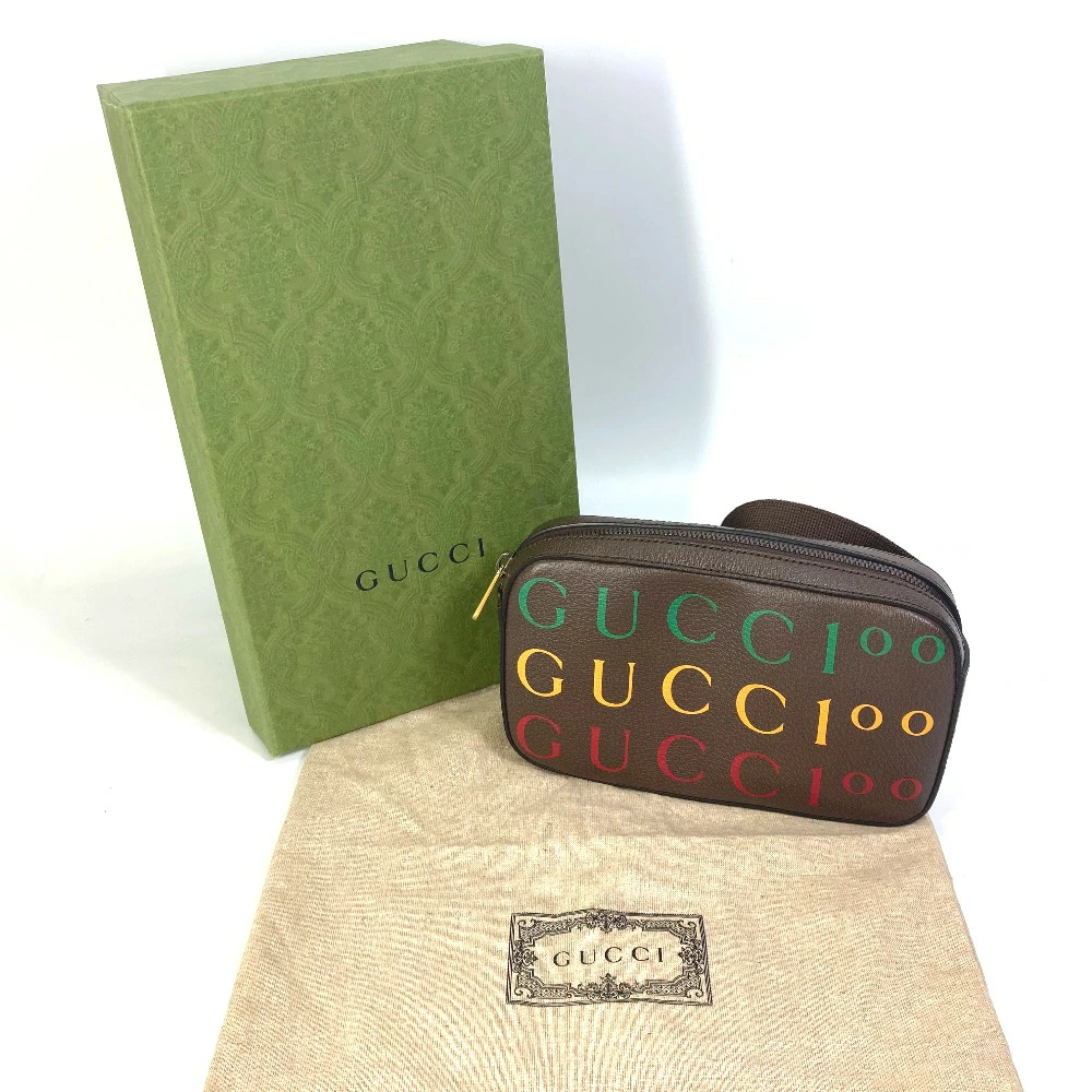 GUCCI 602695 Crossbody Belt Bag, 100th Anniversary Logo, Men's Brown Leather Shoulder Bag, Unused [Pre-owned]