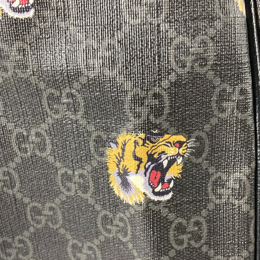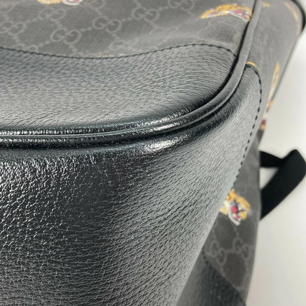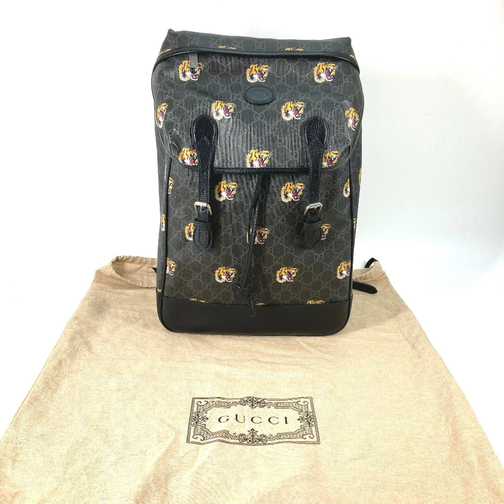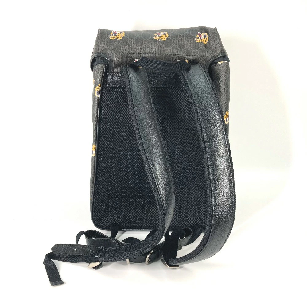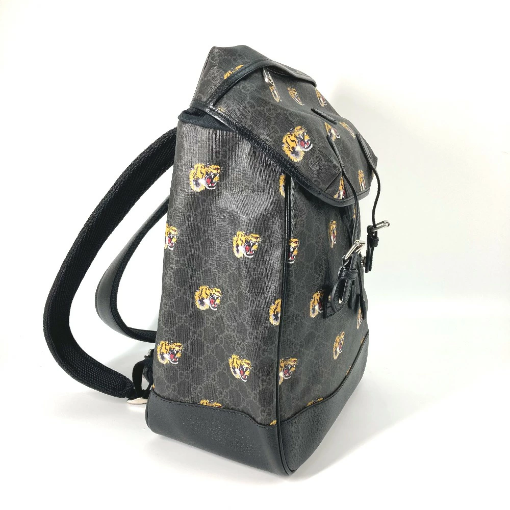 GUCCI 696013 Interlocking G Medium Tiger Backpack in GG Supreme Canvas, Men's, Black, Like New [Pre-owned]