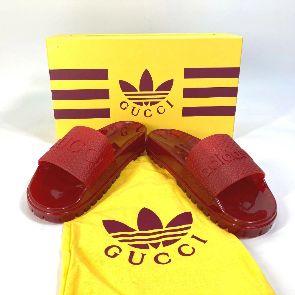 | 商品説明 | ADIDAS×GUCCIのスライド サンダルは、幾何学模様の透明なラバーで登場します。 |