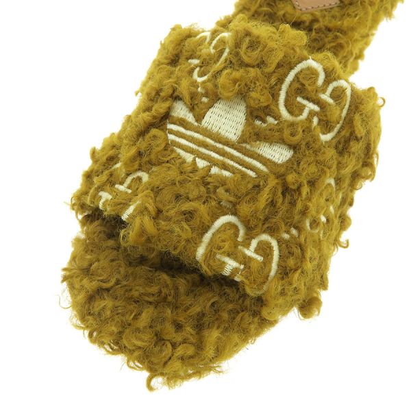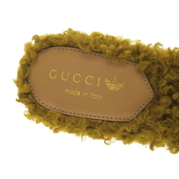 ■採寸#35 日本サイズ:約22cm ヒール高さ:8.5cm 甲幅:約7.5cm■素材表記なし■コメントグッチとアディダスコラボのミュールが入荷しました!モコモコのボアにグッチらしい柄とアディダスのアイコンが刺繍で入ったデザインとなっております☆ボア生地の風合い程度の毛羽立ち、ソール試着程度の使用感などありますが大きな型崩れはなく使用頻度も少なめのお品物になるかと思います。