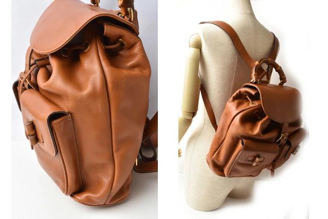 グッチより、リュック バンブー/バックパックです。レトロな雰囲気を残しつつ、ヴィンテージ加工を施したデザイン。持ち手には、グッチならではのバンブーを使用しています。
