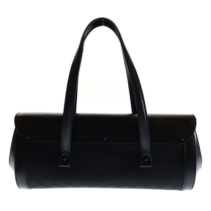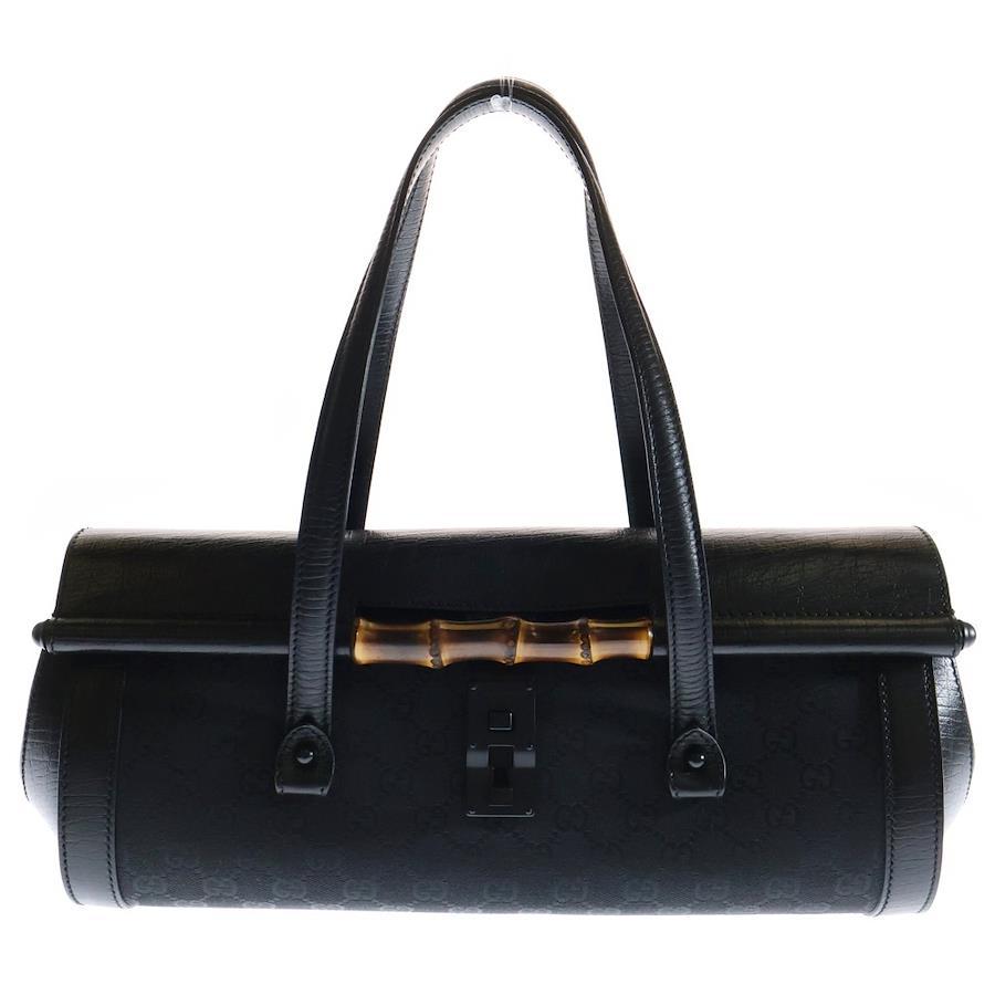 [モデル]バンブー ハンドバッグ ボストンバッグ ブラック キャンバス×レザー 111715