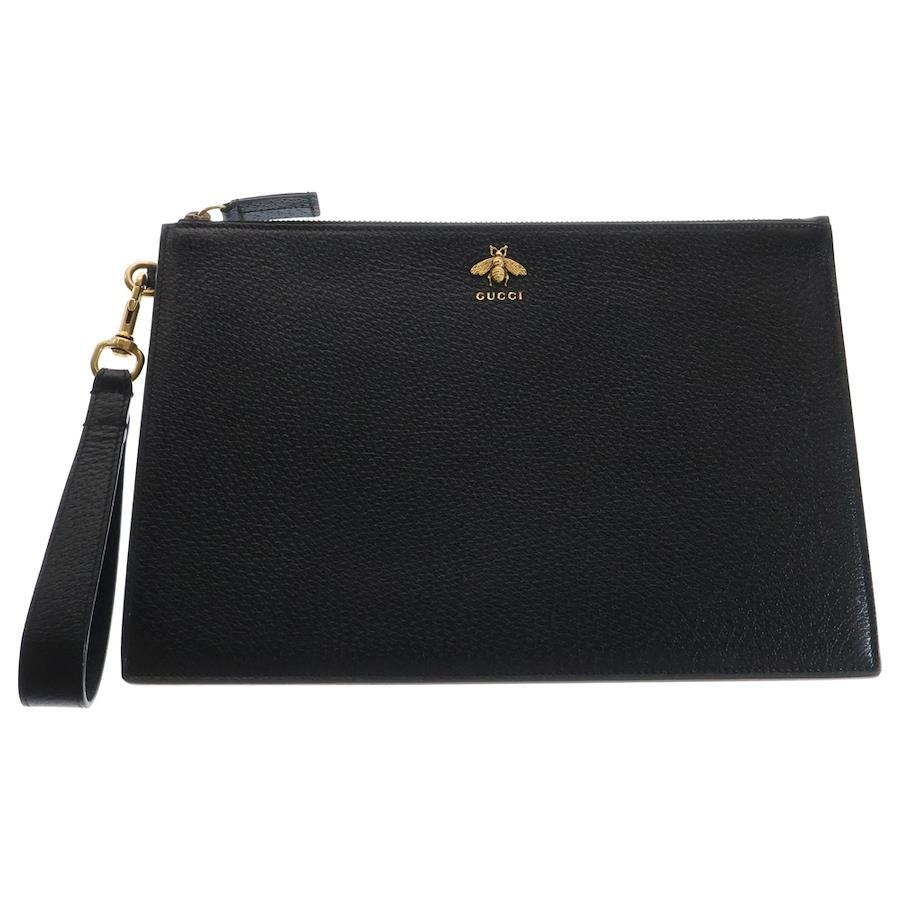 [モデル]ビー 蜂 セカンドバッグ クラッチバッグ ケース ブラック ゴールド金具 レザー 523684