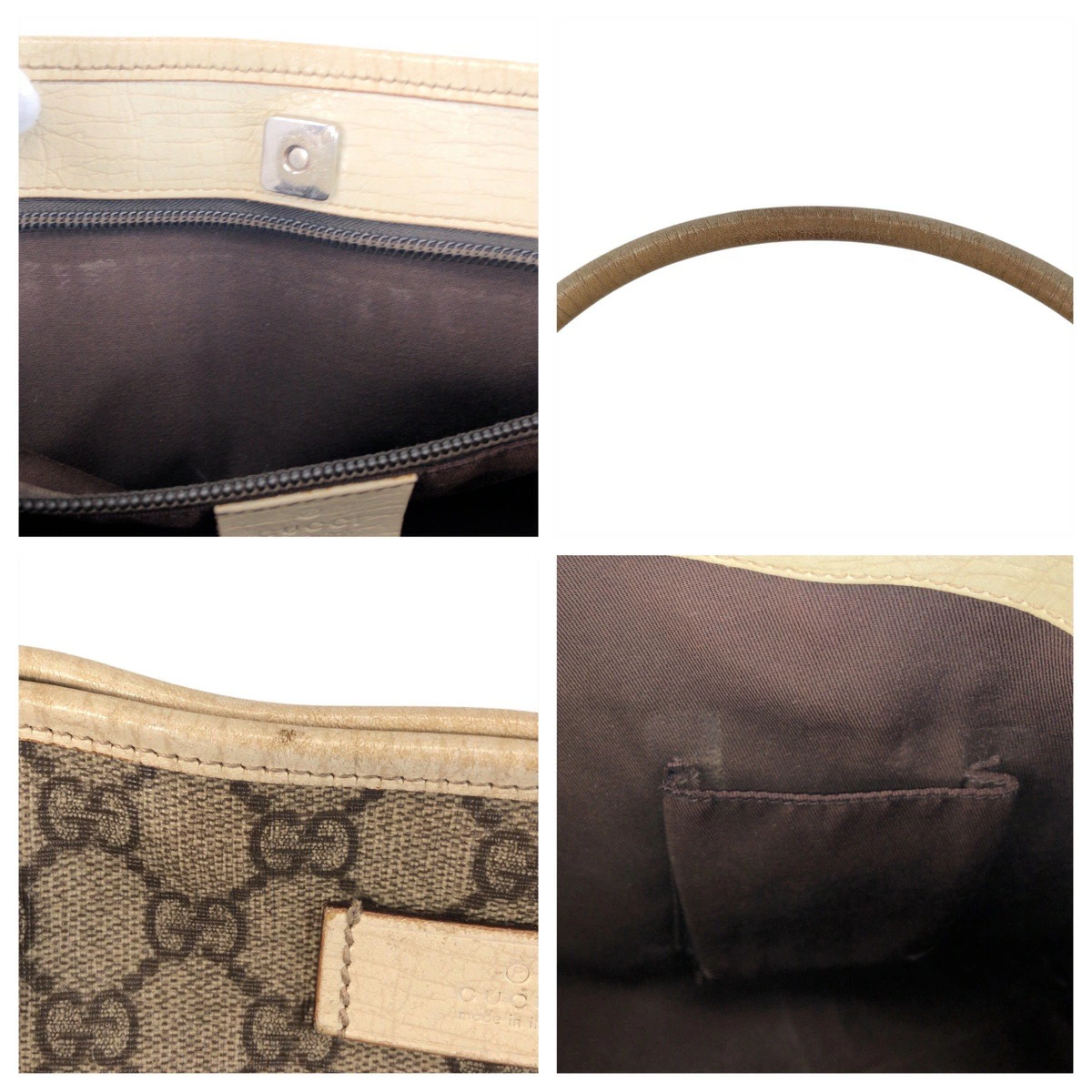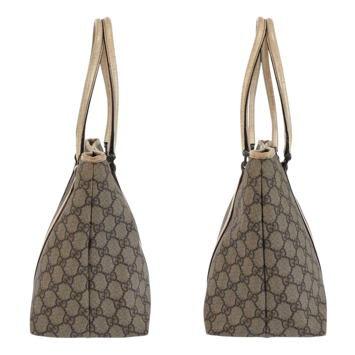 GUCCI Beige/White GG Canvas/Leather Tote Bag 114595 Women's Shoulder Bag 506348 [Pre-owned]
