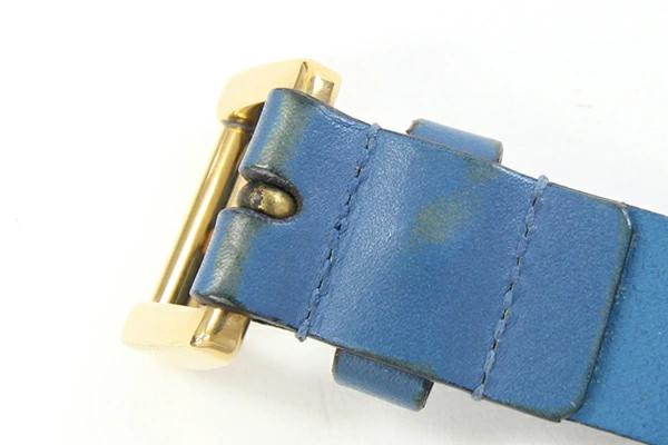 | 状態 | 外側:小キズ、スレ、薄汚れ、薄っすら黄ばみ汚れあり。ベルト穴付近シワあり。 内側:ベルト穴に使用感あり。スレ、小キズ、薄汚れあり。 金具:小キズ、スレ、クスミあり。 |