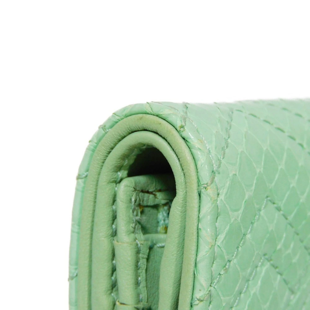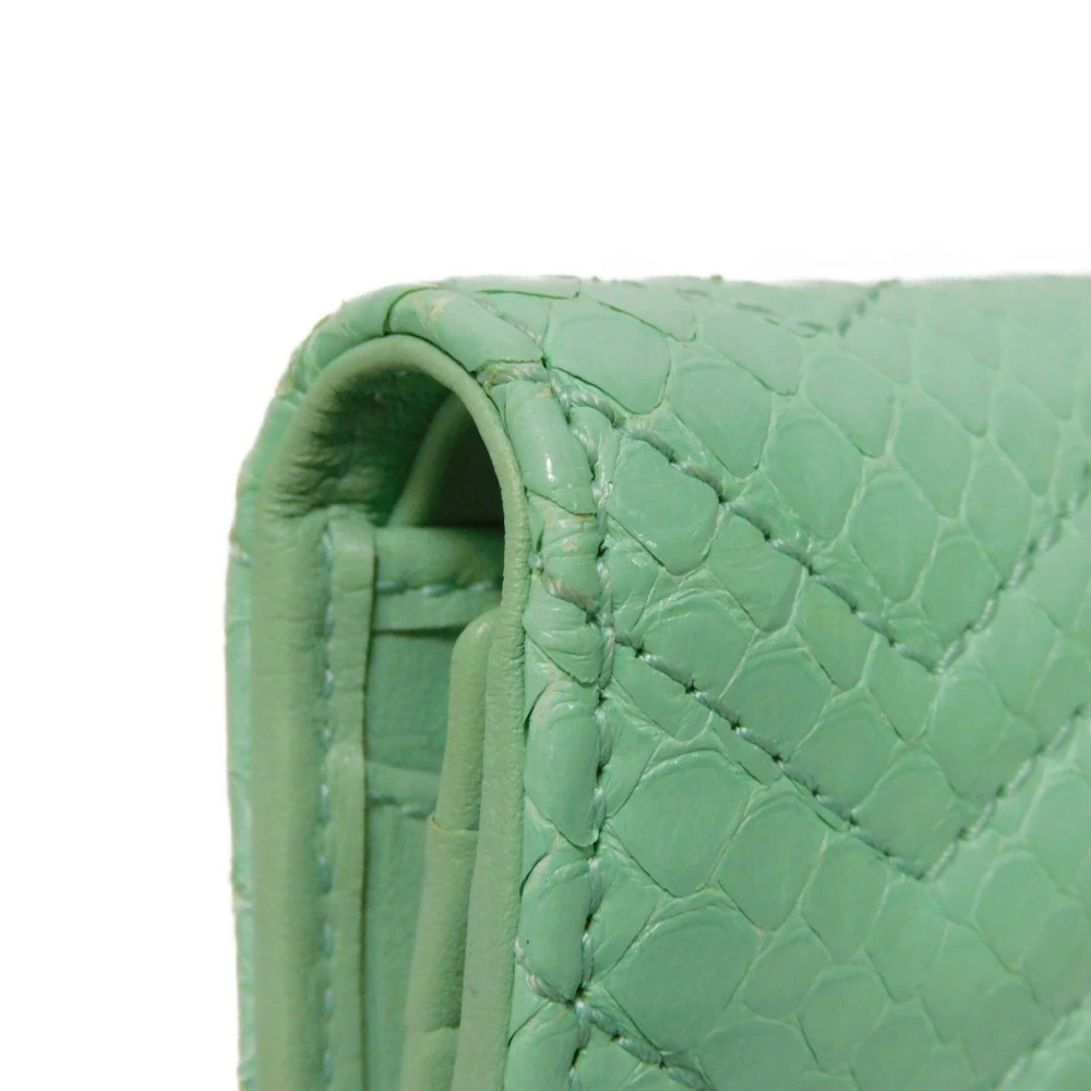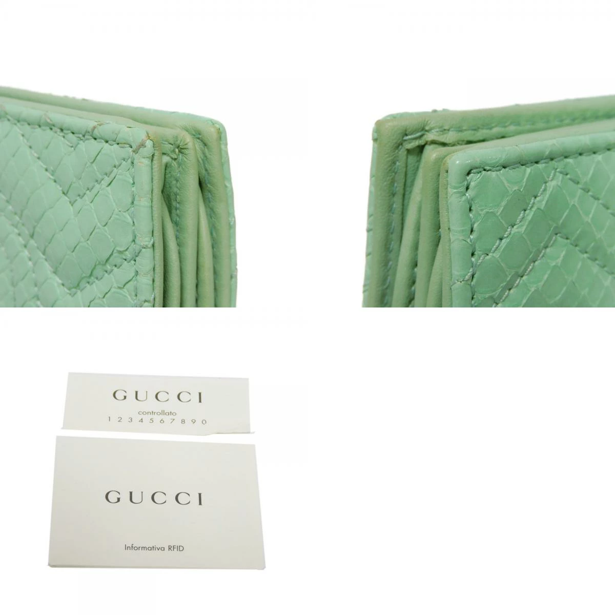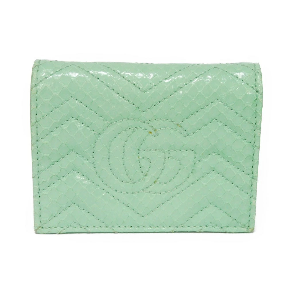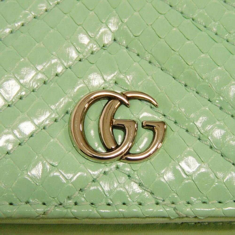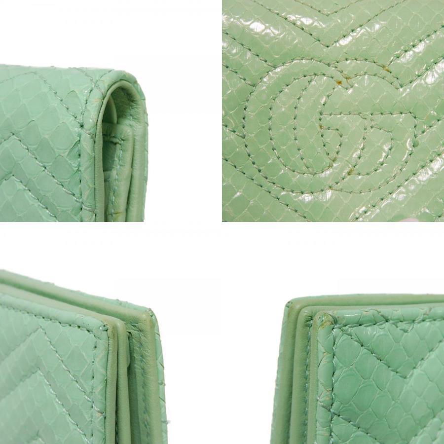 パイソンレザーにシェブロンモチーフのキルティングステッチやダブルGのシグネチャーがあしらわれた「コンパクト ウォレット」フラップ式二つ折り財布です。 |