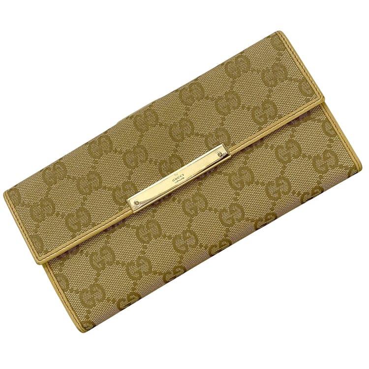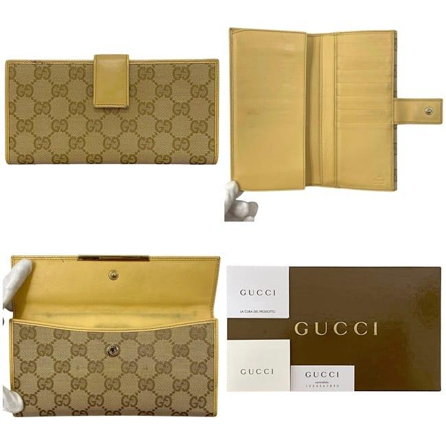商品名:二つ折り長財布ブランド名:グッチ/GUCCI商品ランク:ABランク素材:キャンバスレザーサイズ:(約)w:19cm×h:9.5cm×d:3.5cm型番・品番:112715シリアル:3661ライン:GGキャンバスカラー:ベージュ仕様:オープンポケット×4、カードポケット×7、小銭入れ(ホック)×1付属品:箱印刷物詳細説明:角に擦れ、金具に傷、フラップ内側や小銭入れ内に汚れ有、使用感はございますが比較的綺麗なお品物です。管理ナンバー:ec-23810no,9600621250809