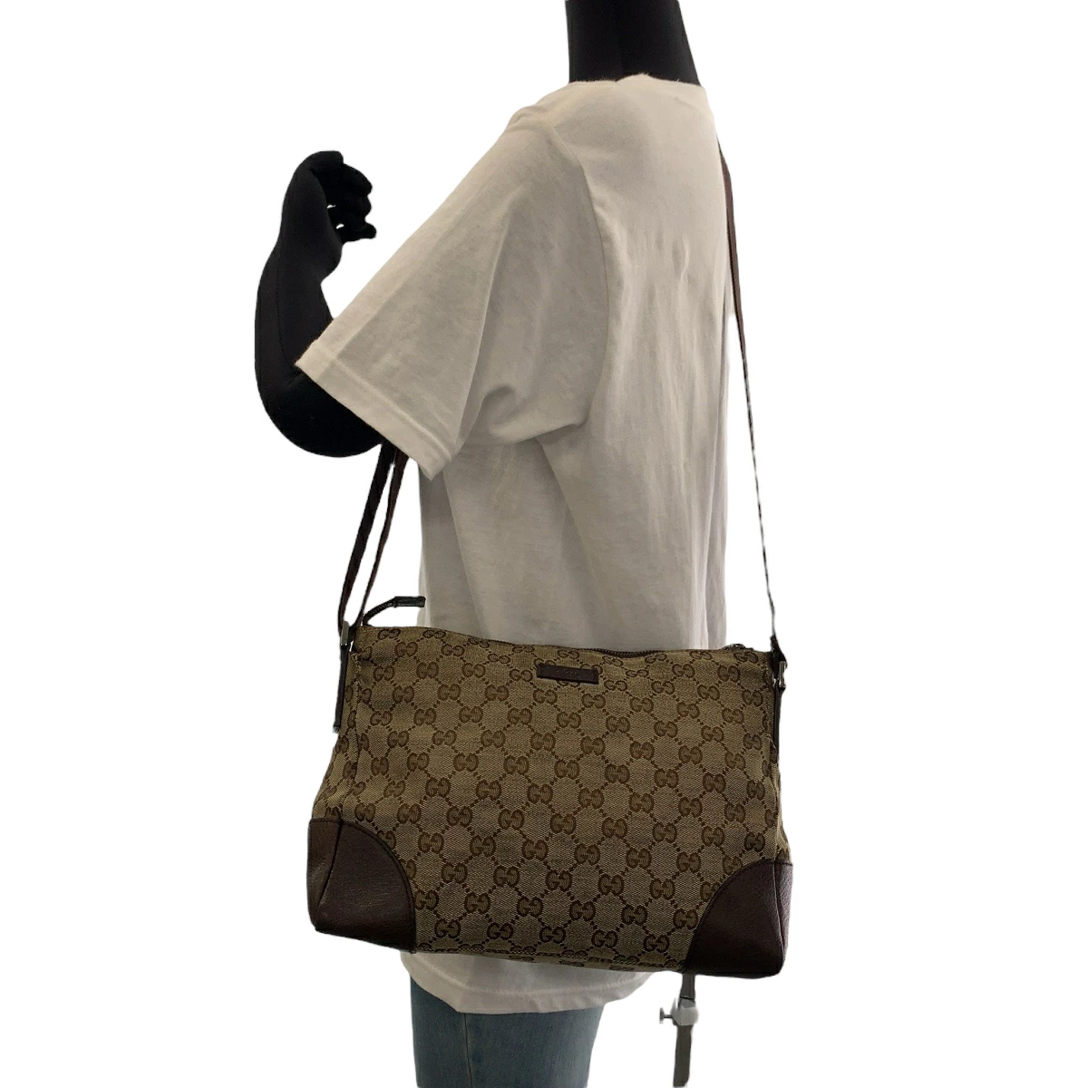 GUCCI Brown/Beige GG Canvas with Silver Hardware 114273 Shoulder/Messenger Bag for Women 503685 [Pre-owned]