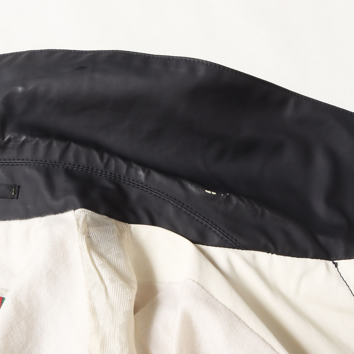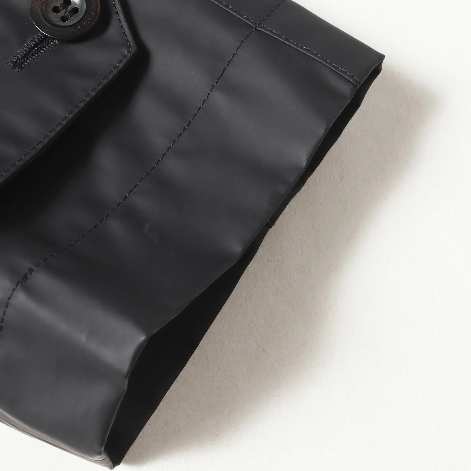 | 商品説明 | ・撥水性のあるポリウレタンコーティングコットン生地 ・フライフロントステンカラー ・フロントダーツ ・総裏地 ・袖裾ボタン留めベルトデザイン ・袖裏ジオメトリックジャガード ・センターベント |