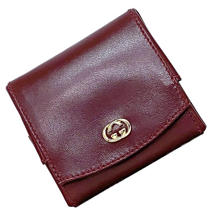 グッチ コインケース ec-23637 ボルドー インターロッキング ヒステリア 030 904 0325 小銭入れ レザー 中古 GUCCI GG ホック ミニ コンパクト ヴィンテージ 定番 人気 小さい 小銭 ケース レディース メンズ 小物 革 お洒落 シンプル ブランド 本物 鑑定済み
