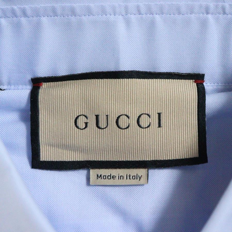 [モデル]Cotton shirt with Double G embroidery ダブルG ロゴエンブロイダリー コットン 長袖シャツ ライトブルー 699554 ZAJOM