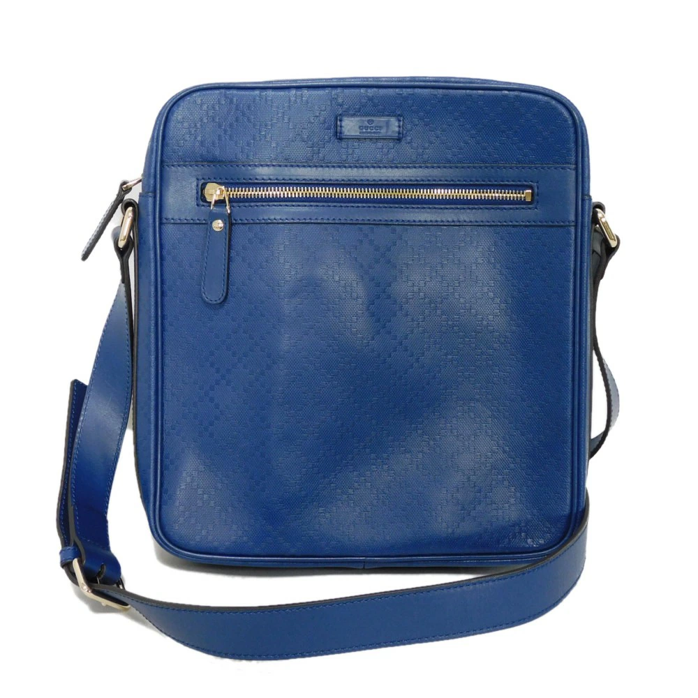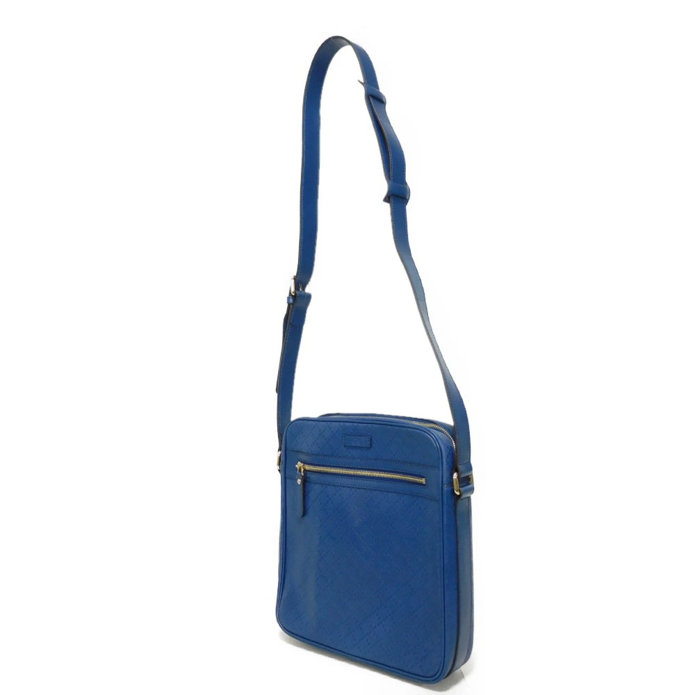 ダイヤモンドモチーフのパターンがエンボス加工された、ディアマンテレザーにグッチのロゴパッチがあしらわれた「メッセンジャーバッグ」ショルダーバッグです。 |