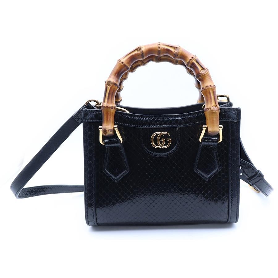 [モデル]ダイアナ バンブー 2wayバッグ ハンドバッグ ショルダーバッグ ブラック レザー ゴールド金具 655661
