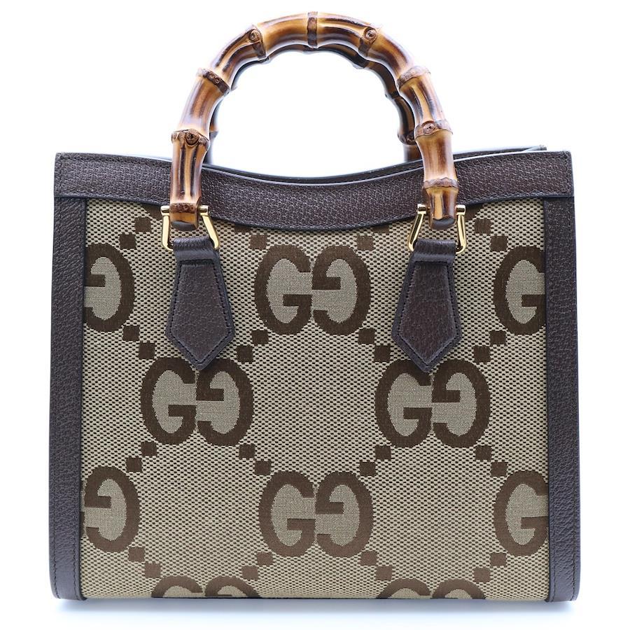 Gucci Diana Bamboo GG Canvas and Leather 2-Way Hand/Shoulder Bag with Gold Hardware, Brown (660195)