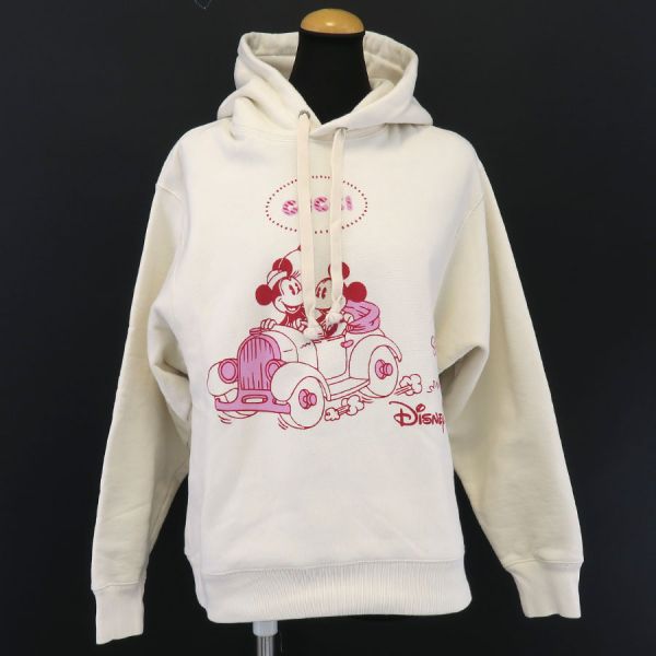 ■採寸#XS 肩幅:45cm 袖丈:54cm B:108cm 着丈:60cm■素材コットン100%■コメントグッチからメンズディズニーコラボパーカーが入荷しました!レトロなデザインのミッキーマウスとミニーマウスがドライブするプリントと、赤とピンクカラーの配色が可愛らしいプルオーバーパーカーです☆全体にシワ、袖先や裾のヨレ、強い柔軟剤臭、フード紐のヨレ、右袖身頃側にやや毛玉感が見受けられる為Bランクでのご紹介となりました。着用時に目立つダメージや汚れはなく、まだまだ問題なくご着用いただけます◎