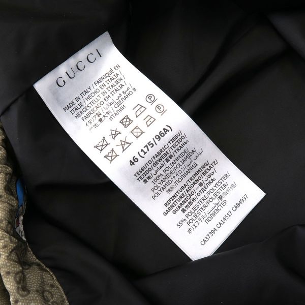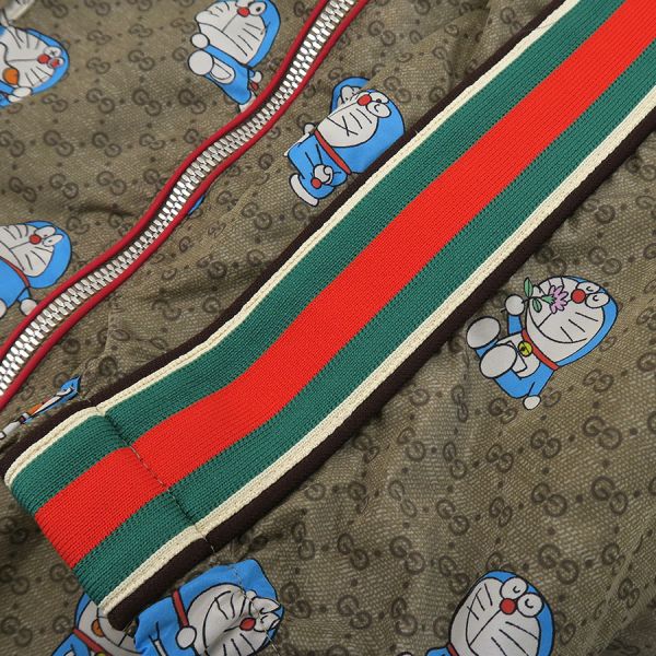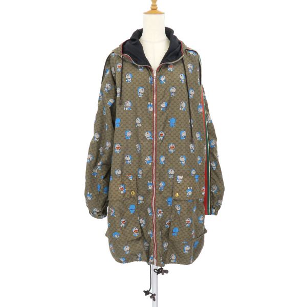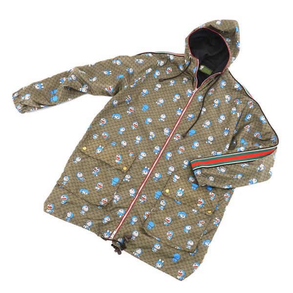 ■採寸#46 裄丈:91cm B:124cm 着丈:92cm■素材表地:ナイロン100% 装飾部分:ポリエステル55% コットン45% 裏地:ナイロン100%■コメントグッチからドラえもん/ブルゾンが入荷しました。グッチとドラえもんのコラボアイテム!グッチの象徴GG柄にサイドにはシェリーライン、ドラえもんのプリントデザインが可愛らしいブルゾンです☆状態は全体にシワ、前襟周りにやや薄汚れ、ジッパー金具やボタンにスレ・小キズが見受けられますが、目立つ汚れやダメージはないのでAランク寄りのBランクでのご紹介です。まだまだ問題なくご着用いただけます◎