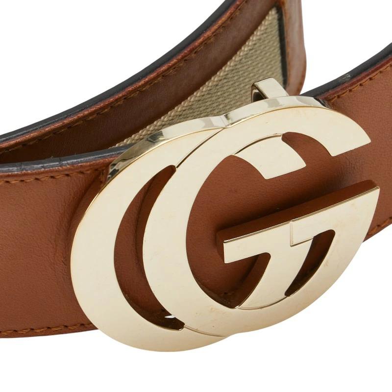 Gucci Double G Belt, Sizes: 80/32, 212956, Brown/Beige Leather/Nylon, Men's, Pre-owned