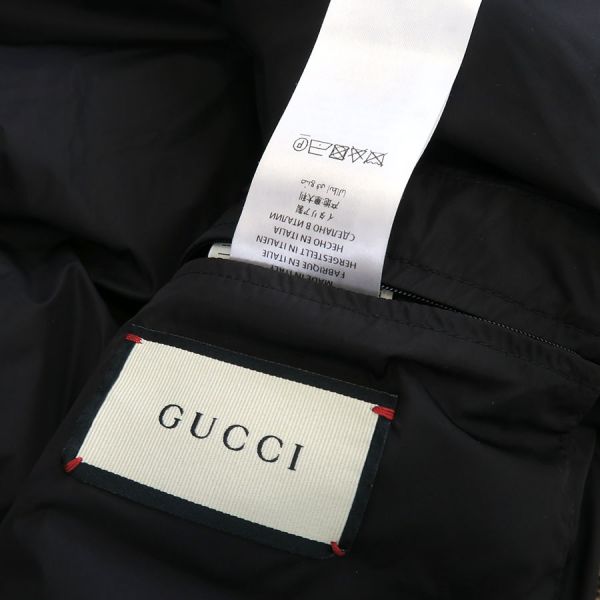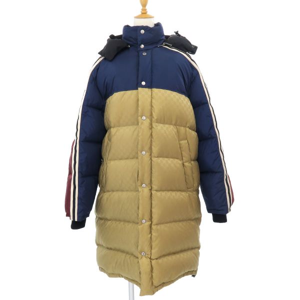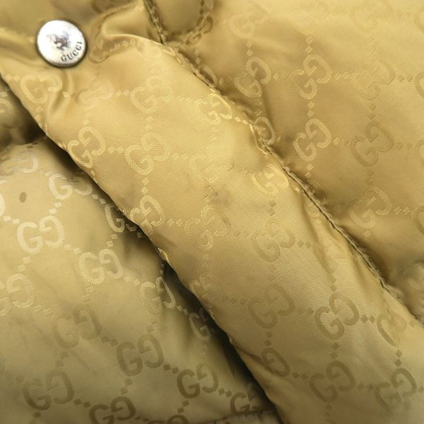 ■採寸#48 裄丈:100cm B:126cm 着丈:106cm■素材表地:ナイロン100% 襟部分:コットン70% レーヨン28% ポリウレタン2% 装飾部:ポリエステル55% コットン45% 一部:ウール100% 中綿1:ポリエステル100% 中綿2:ダウン90% フェザー10% 裏地:ナイロン100% ポケット:コットン100%■コメントグッチからダウンコートが入荷しました。グッチを象徴するGGパターンが全面にあしらわれた素敵なダウンコートです☆状態は全体にシワ、両袖口に起毛感、右肩・右袖・左袖・前中央下・後右上にシミ汚れ・スレ汚れ、ボタン金具にスレ・小キズ等が見受けられますので、Bランクでのご紹介です。普段着としてはまだまだ問題なくご着用いただけます◎