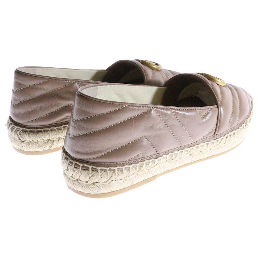 [モデル]エスパドリーユ ダブルG シェブロン キルティング フラット スリッポン シューズ レディース ピンク/ベージュ 551890