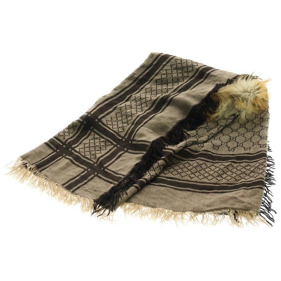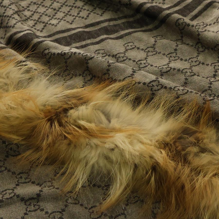 [モデル]ファー付きストール GG柄 マフラー ブラウン ブラック ウール×シルク