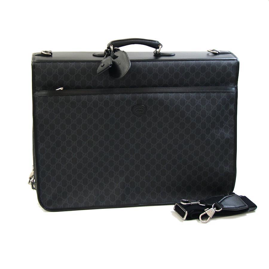 グッチガーメントバッグGGスプリーム703484ブラックグレーPVCレザー中古ガーメントケースショルダー付インターロッキングGメンズGUCCI