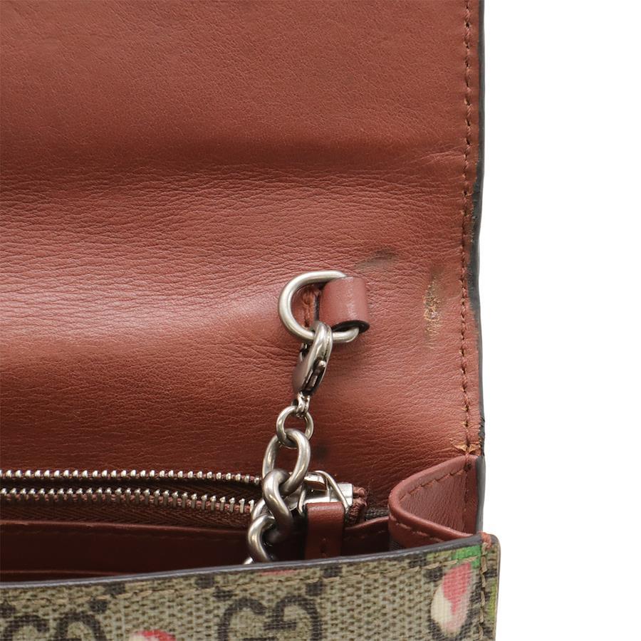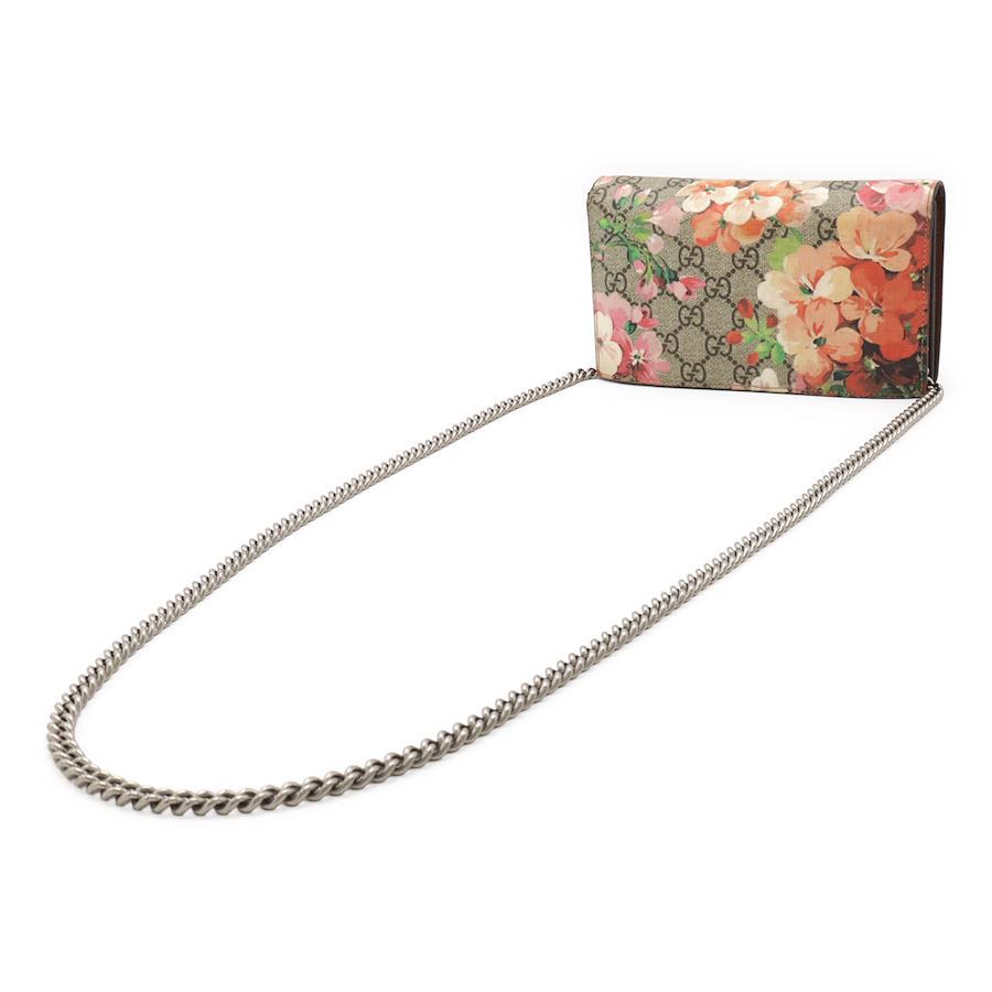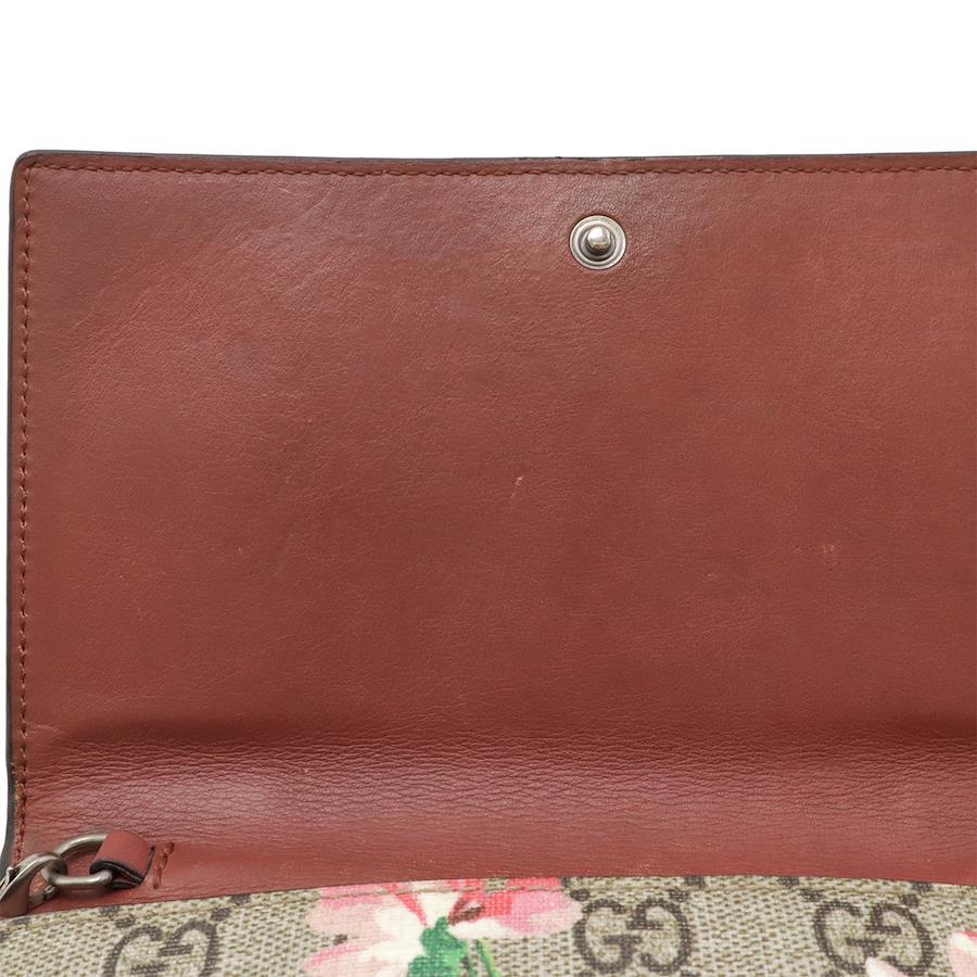 【商品説明】[サイズ]W19cm H12cm D3cm ショルダーストラップ長さ約130cm(調節可、金具含む)[材質]GGブルームス キャンバス(PVCコーティング)/レザー[カラー]ベージュ/ピンク系マルチカラー[仕様]札入れ1、小銭入れ1、カードポケット18[付属品]保存袋 ショルダーストラップ[重さ]約300g