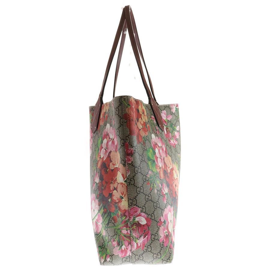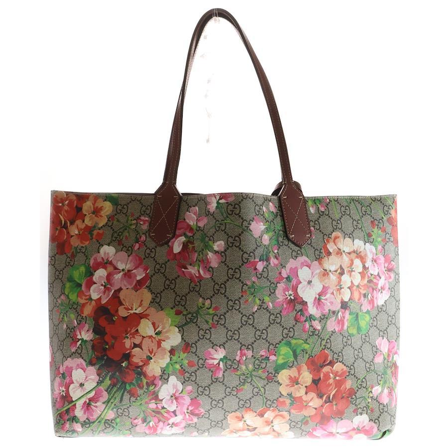 [モデル]GGブルームス ミディアム リバーシブル 花柄 トートバッグ ハンドバッグ ベージュ×ピンク レザー 368568