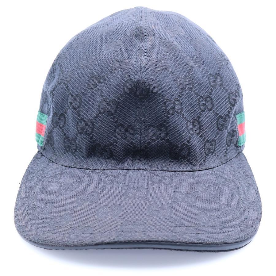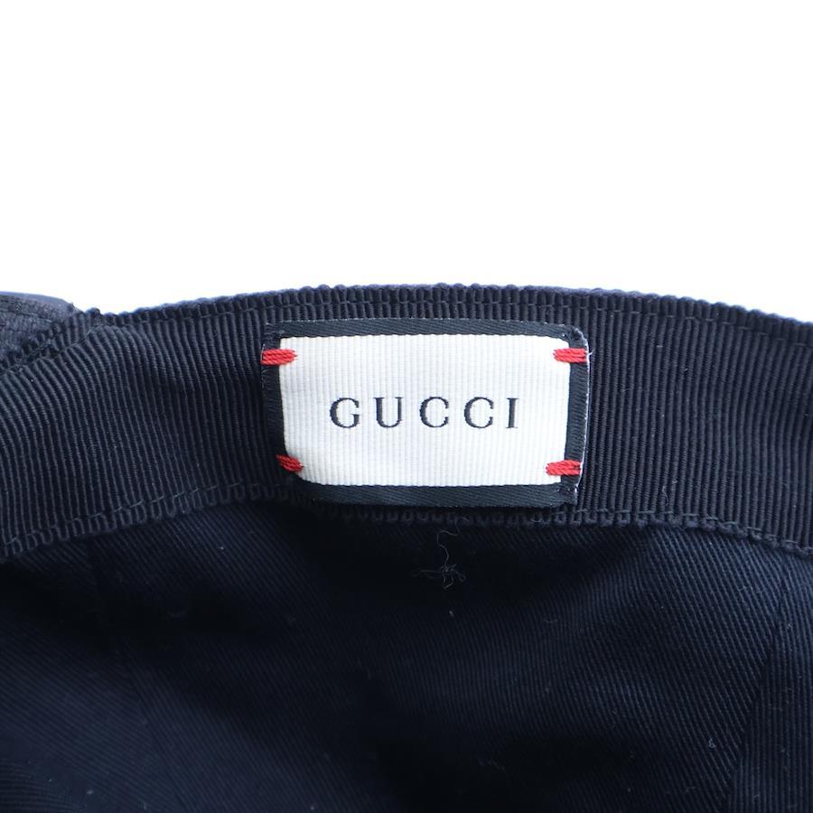 [モデル]GGキャンバス シェリーライン レザー 6パネル ベースボールキャップ 帽子 ブラック 200035