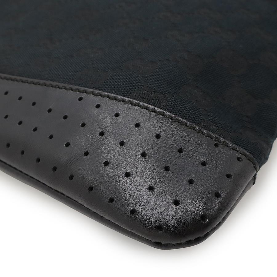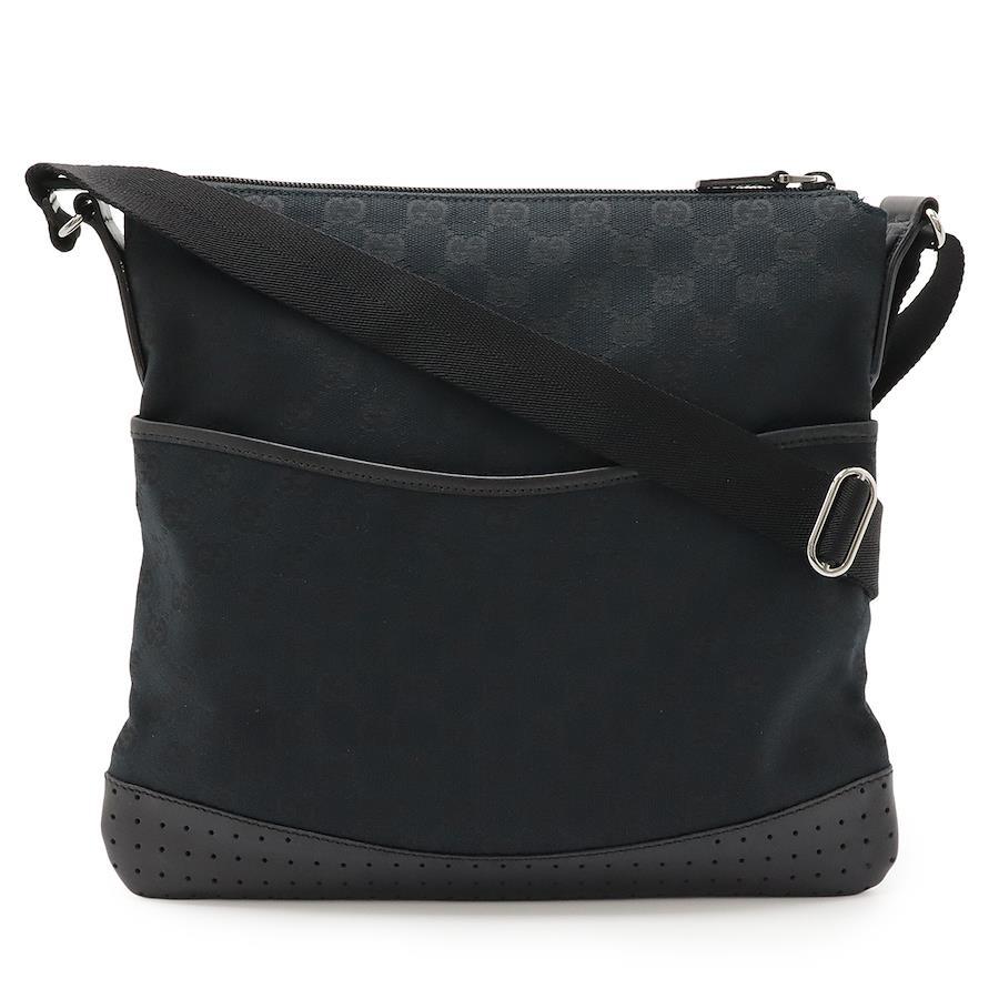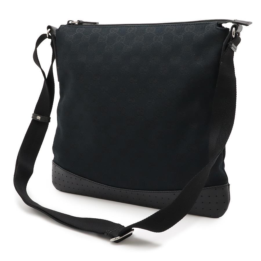 GUCCI GG Canvas Shoulder Bag, Messenger Bag, Crossbody, Perforated Leather, Black, Silver Hardware, 145857
