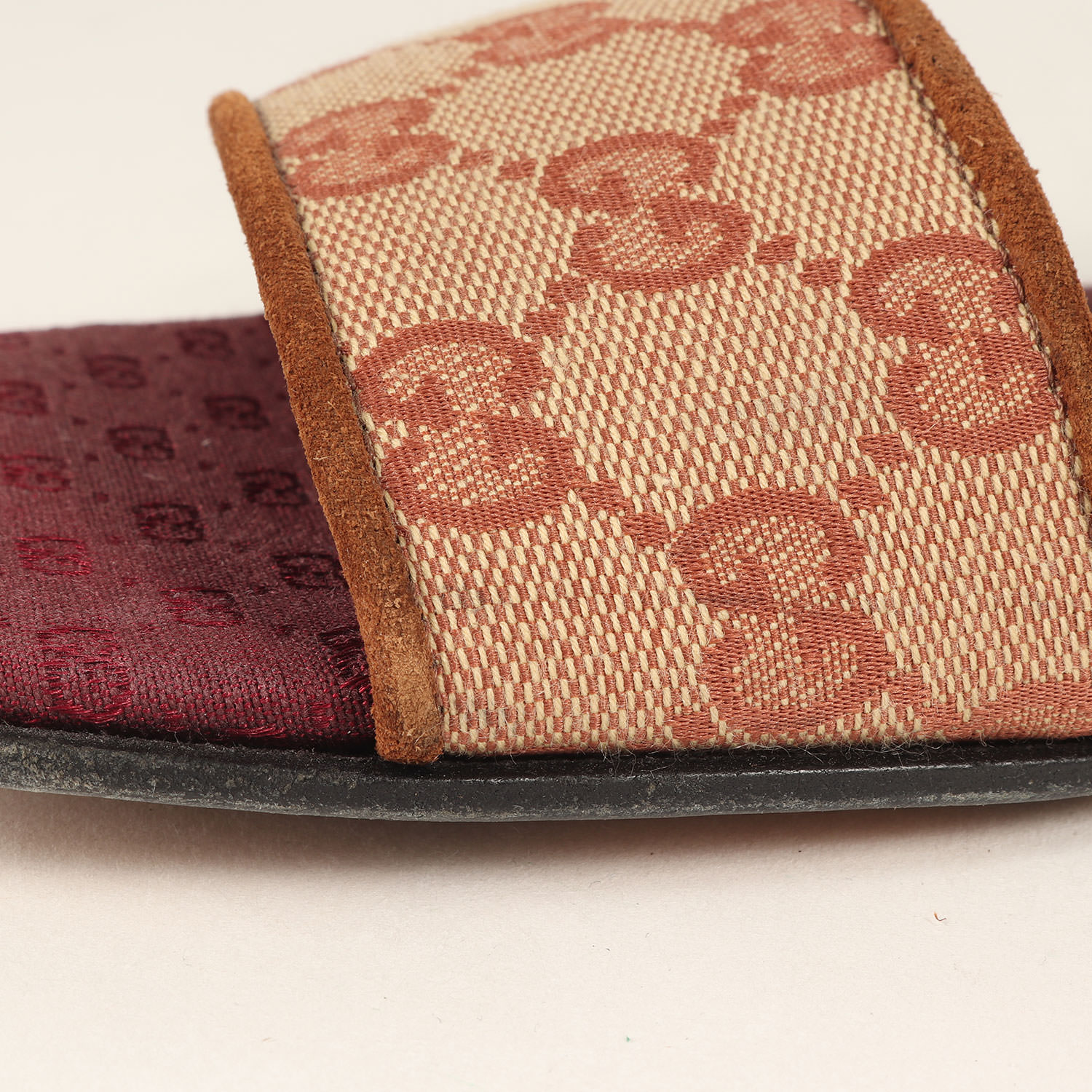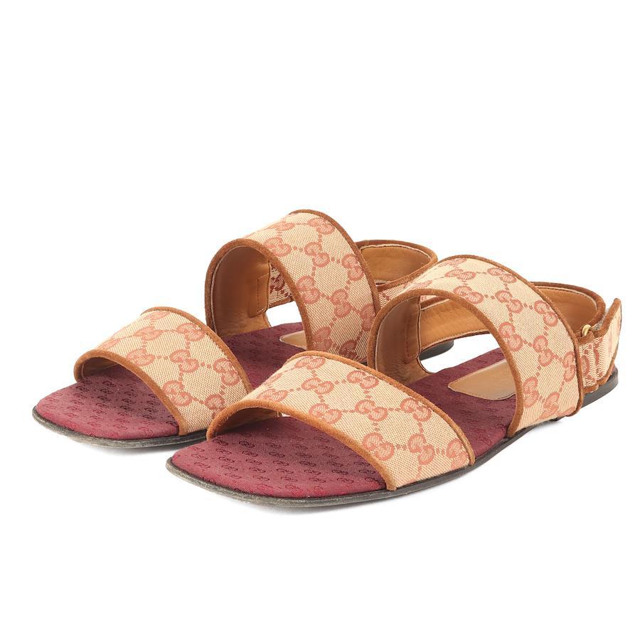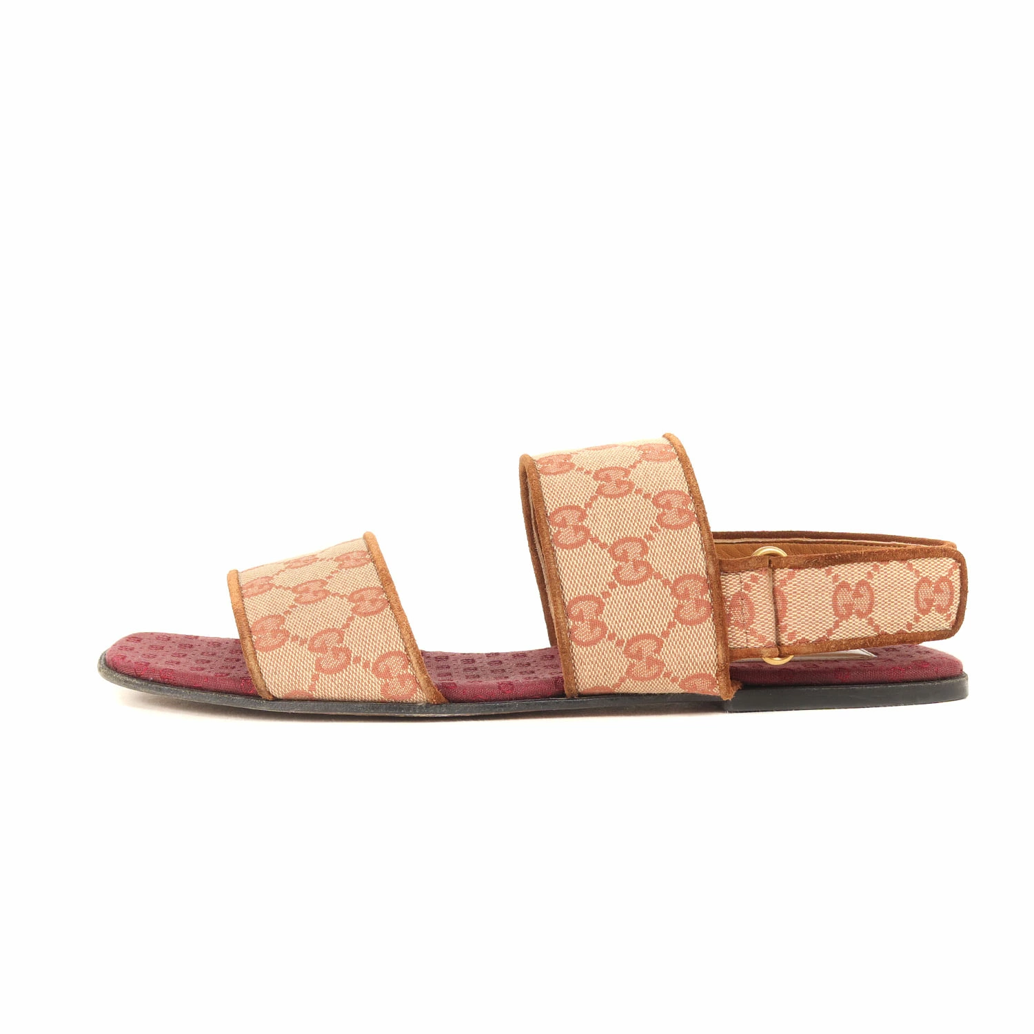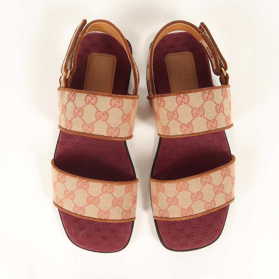 | 商品説明 | 人気のGGキャンバス生地を使用したサンダルです。スウェード生地のパイピングラインがアクセントになります。 |