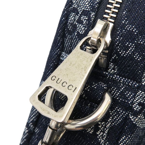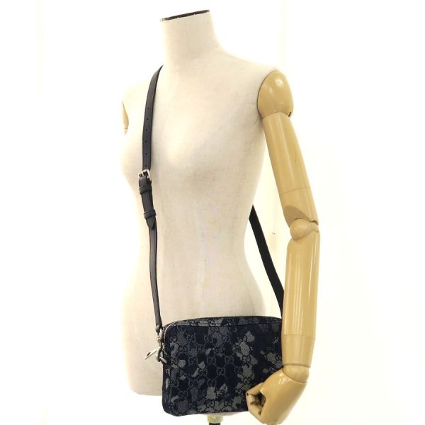 グッチ GGデニム・ショルダーのご紹介です。ブラック?グレーのGG柄、間口はファスナー開閉の角形のバッグになります。ハンドルベルトを取り付けてクラッチバッグ、ショルダーを取り付けて斜め掛けショルダー(長さは最長で約120cm)としてもお使いいただけます。内部はブラックのキャンバス地で、スリットポケットがあります。スマホや大きくない長財布と小物の収納向きです。状態はSランク。使用感もほとんど感じられず、ショルダーベルトに保管による丸まり感などがありますが、プレゼントにも最適なグッチ GGデニム・ショルダーはいかがでしょうか☆