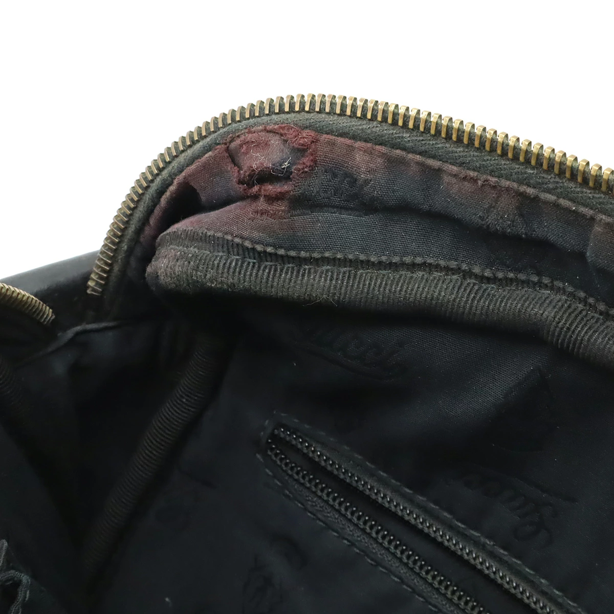 若干の材質剥がれ、背面薄汚れ、レザー部分スレ、ポケット内フチ変色