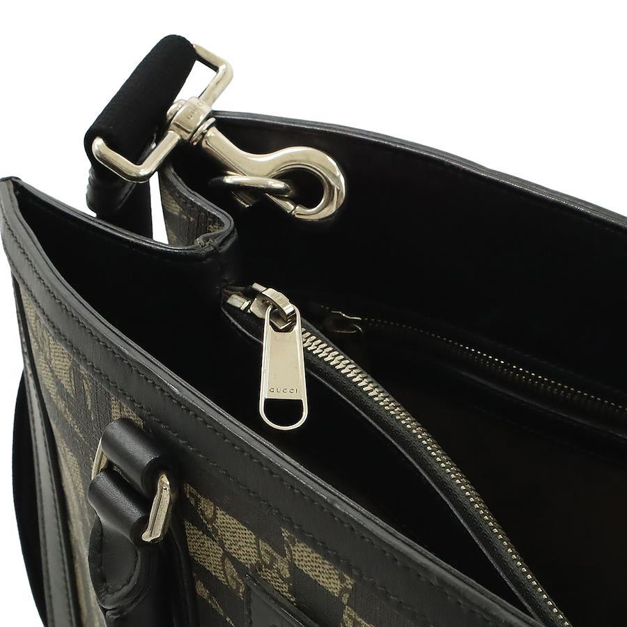 【商品説明】[サイズ]W37cm H38cm D12cm ショルダーストラップ最長約154cm(調節可、金具含む)[材質]GGスプリームキャンバス(PVCコーティング)/レザー[カラー]ベージュ/ブラック[仕様]内側間仕切りファスナーポケット1、ファスナーポケット1、小ポケット2[付属品]ショルダーストラップ[重さ]約1.5kg