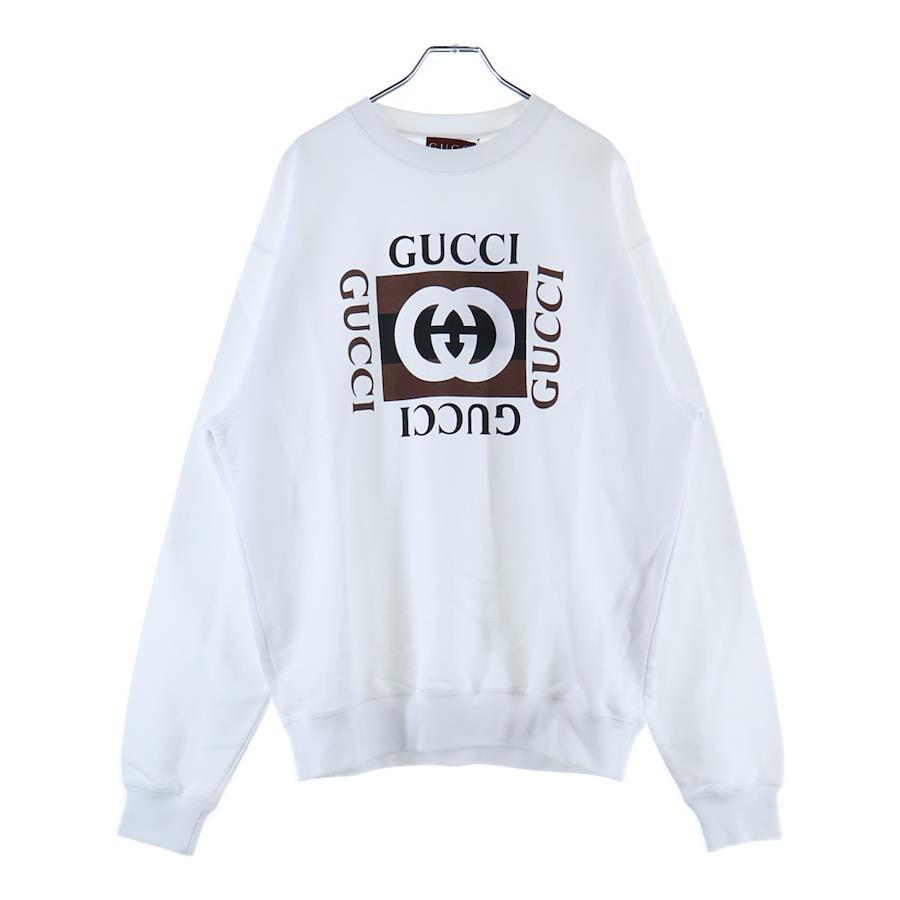 [モデル]GGロゴプリント クルーネック スウェット トレーナー ホワイト 784413 XJGMB
