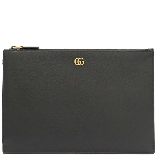 グッチ GUCCI クラッチバッグ GGマーモント レザー ブラック 黒 セカンドバッグ ポーチ ゴールド金具 475317 メンズ 【箱】定番 人気 美品 【中古】