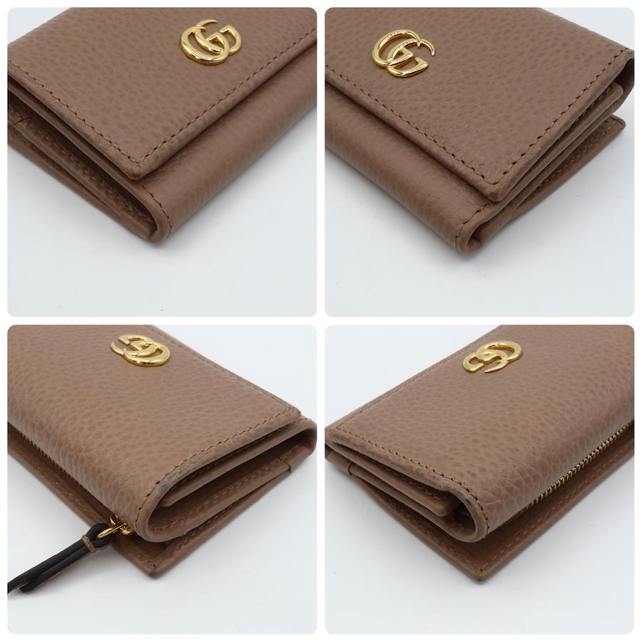 【商品説明】品名 グッチ GGマーモント レザー 折り財布 グレージュシリアルナンバーサイズ 約縦7センチ 横10センチ 厚み2.5センチ仕様 小銭入れ1 札入れ1 カード入れ4付属品 なし【商品状態】ベタつきありません。ファスナースムーズです。ボタンしっかりとまります。若干のスレ、ヨレがあります。届いたらすぐに気持ちよくお使いいただけるコンディションです。この機会に是非お買い求めください